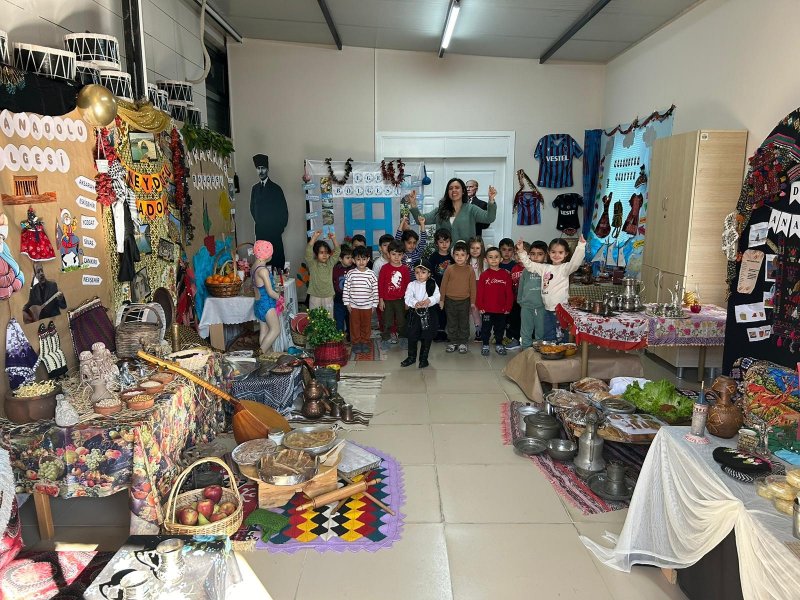 Bu yıl sınıflarında Karadeniz temasını işlediklerini belirten Çiçekler Sınıfı Öğretmeni Gamze Sarı, öğrencilere Karadeniz'in geleneksel ürünleri ve el sanatları hakkında bilgiler verdi. Karadeniz'e ait yöresel yemekler, giyim tarzları ve halk sanatları üzerine çeşitli görseller ve ürünlerin sergilendiği etkinlikte çocuklar, Karadeniz’e özgü doğal malzemeler ve geleneksel giyim unsurları hakkında bilgiler alarak, bölgenin kültürünü yakından tanıma fırsatı buldu. Öğretmen Gamze Sarı, çocukların yerel değerleri öğrenmelerinin önemine vurgu yaparak, öğrencilerin Türk mallarına ve yerli üretime olan bağlılıklarını artırmayı amaçladıklarını ifade etti.