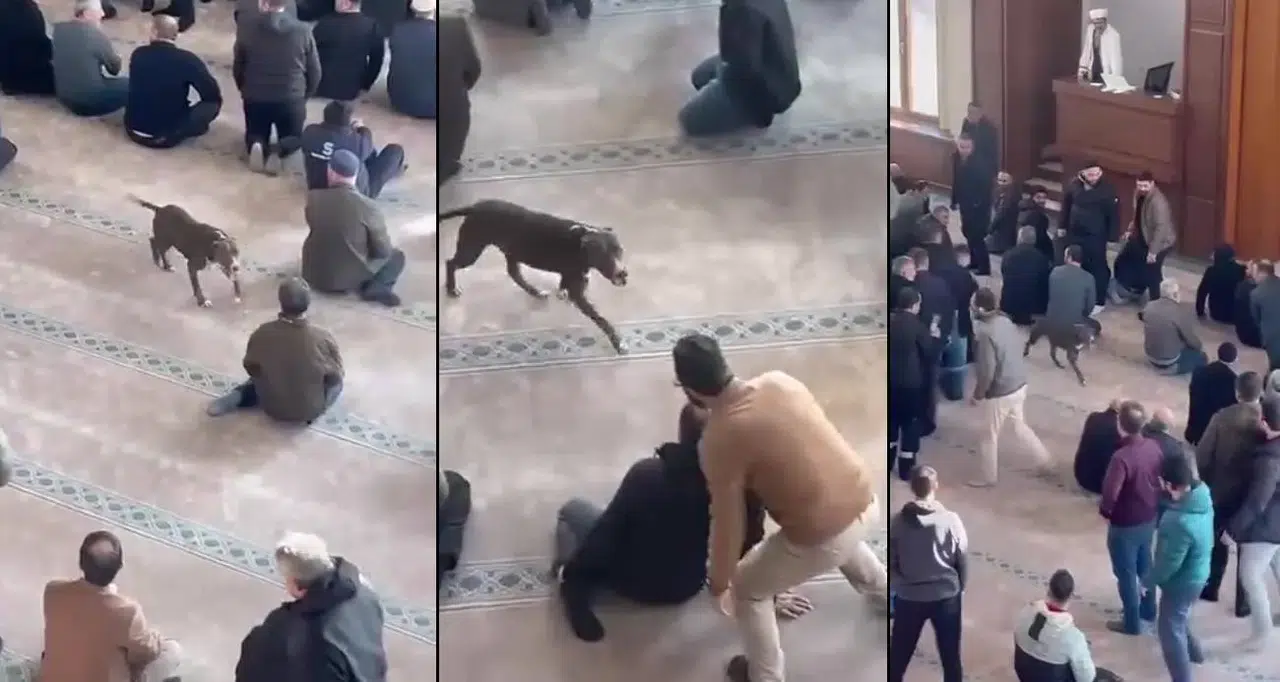 Olay, dün cuma namazı hazırlıklarının sürdüğü sırada meydana geldi. Tasmalı pitbull, açık kapıdan cami içerisine girdi.