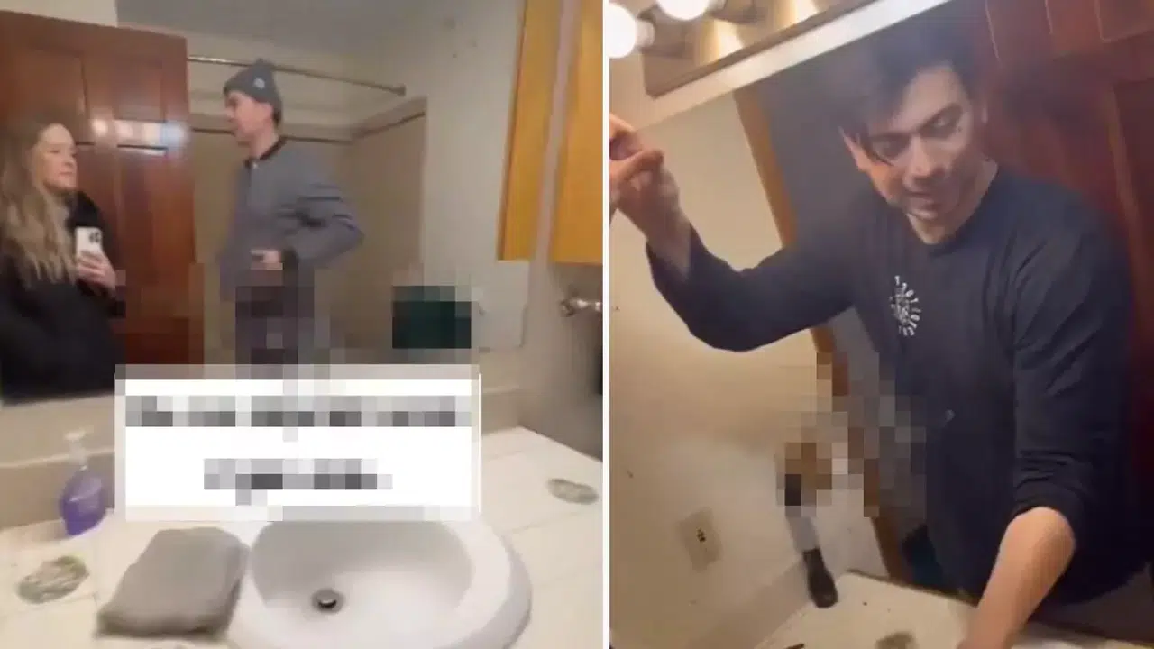 AirBNB'den ev kiralayan genç çift, banyo camının arkasında gizli bölme keşfetti.
