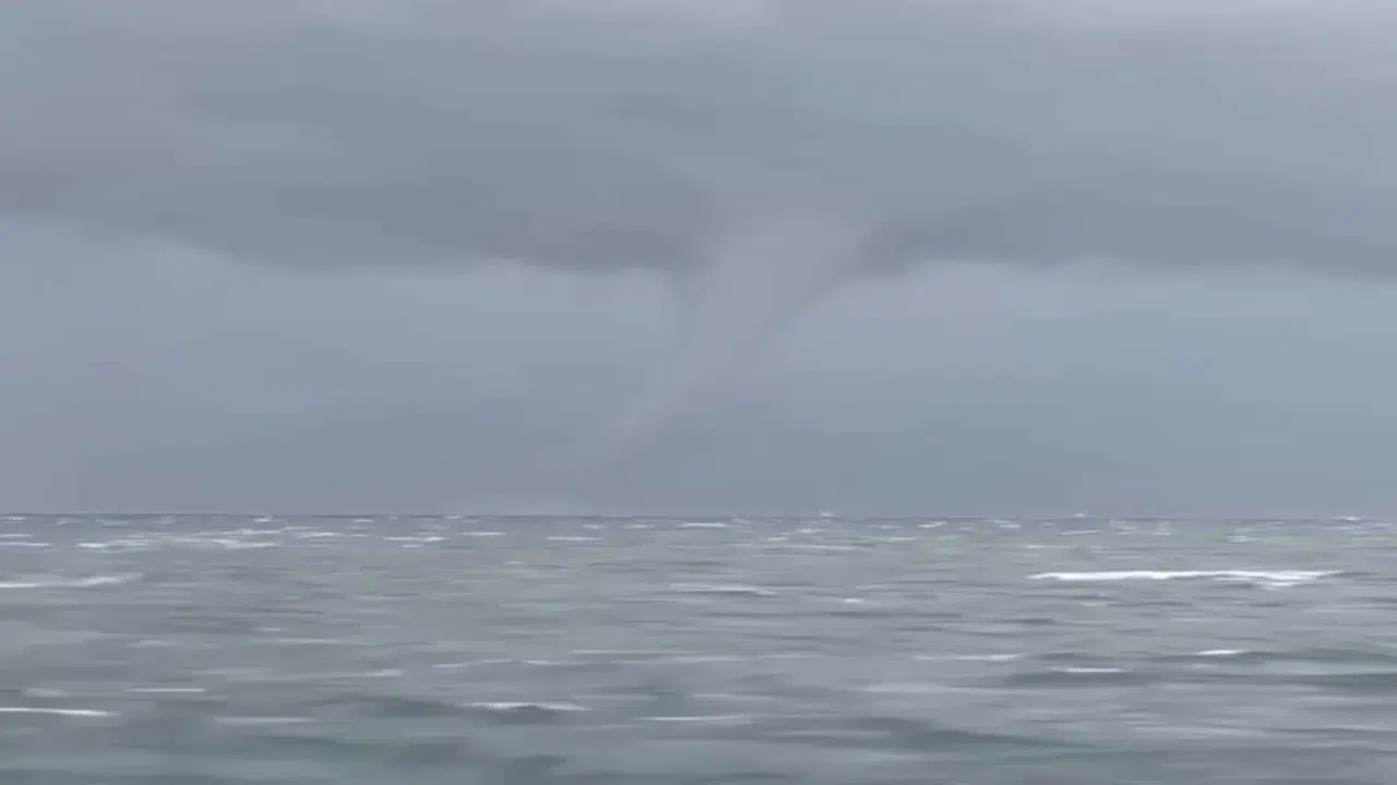 İzmir'in Karaburun ilçesi açıklarında meydana gelen hortum, cep telefonu kamerasıyla görüntülendi.