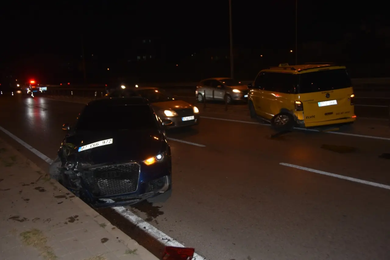 Kaza, Antalya-Alanya D-400 Karayolu Sorgun-Otogar Köprülü kavşak yan yolda meydana geldi. Edinilen bilgiye göre, Muhammed M. M. idaresindeki 07 CCG 972 plakalı otomobil, Ümit A. yönetimindeki 07 J 0680 plakalı ticari taksiyle çarpıştı. Çarpışmanın şiddetiyle otomobilde bulunan sürücü Muhammed M.M. ve yolcu Latife N.Y. yaralandı. Çevredekilerin ihbarı üzerine bölgeye polis ve sağlık ekipleri sev edildi. Olay yerine gelen sağlık ekiplerinin ilk müdahalesinin ardından yaralılar ambulansla hastaneye kaldırıldı. Kazayla ilgili inceleme başlatıldı.