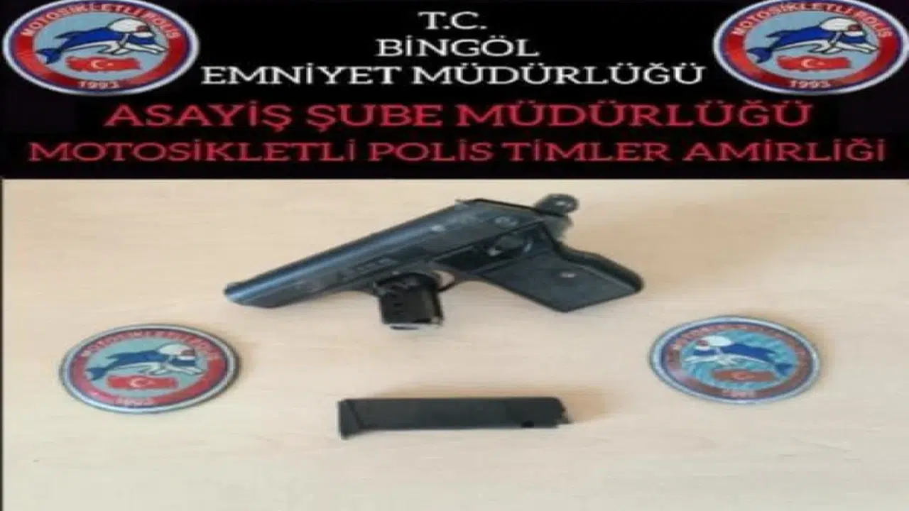 Kamu düzeninin sağlanması, suç ve suçlularla mücadele kapsamında Bingöl Emniyet Müdürlüğü Asayiş Şube Müdürlüğü’ne bağlı Motosikletli Yunus Timleri Büro Amirliği ekiplerinin çalışmaları neticesince şüpheli bir araç durduruldu. İçerisinde bulunan şüpheli şahıs üzerinde yapılan aramada, bir adet 7.65 mm çapında ruhsatsız tabanca ve tabancaya ait 2 adet şarjör ele geçirildi. Tabancaya el konulurken, şüpheli hakkında işlem yapıldığı bildirildi.