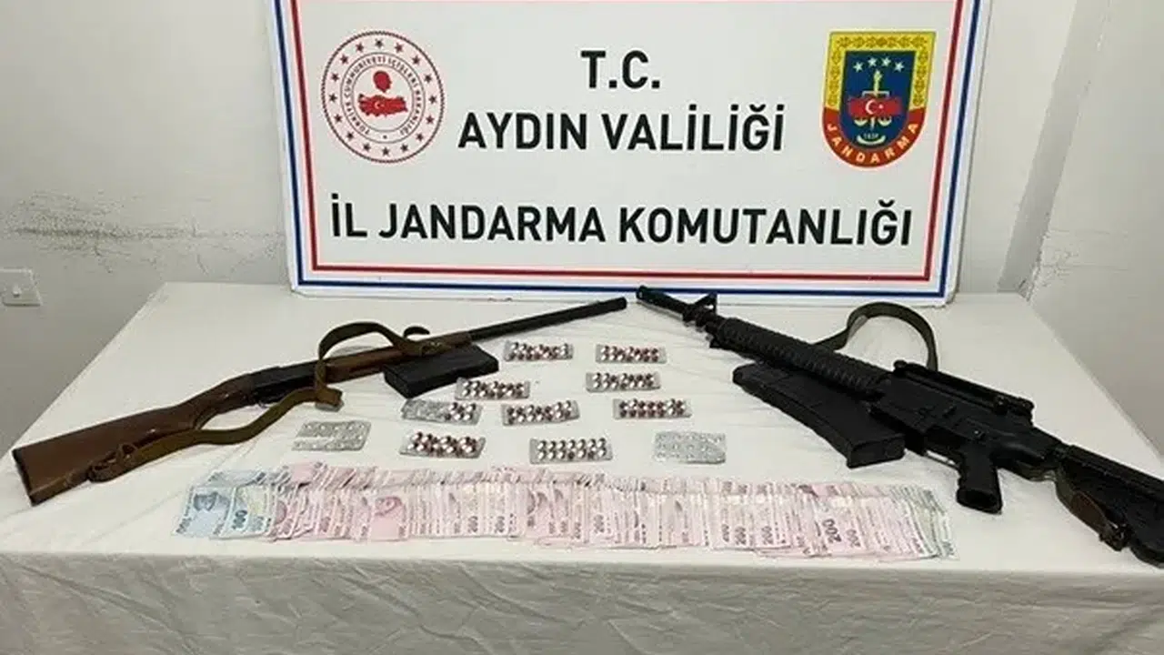 Aydın İl Jandarma Komutanlığı, Narkotik Suçlarla Mücadele Şube Müdürlüğü ve Efeler İlçe Jandarma Komutanlığı ekiplerince yürütülen çalışmalar kapsamında, Efeler ilçesinde bir ikamette yapılan aramada, 118 adet sentetik hap, 2 adet yivsiz av tüfeği ve tüfeklere ait 2 adet şarjör, 24 bin 600 TL suçtan elde edildiği değerlendirilen nakit para ele geçirildi. Yapılan operasyon neticesinde yakalanan bir şüpheli Cumhuriyet Başsavcılığı’na teslim edildi.