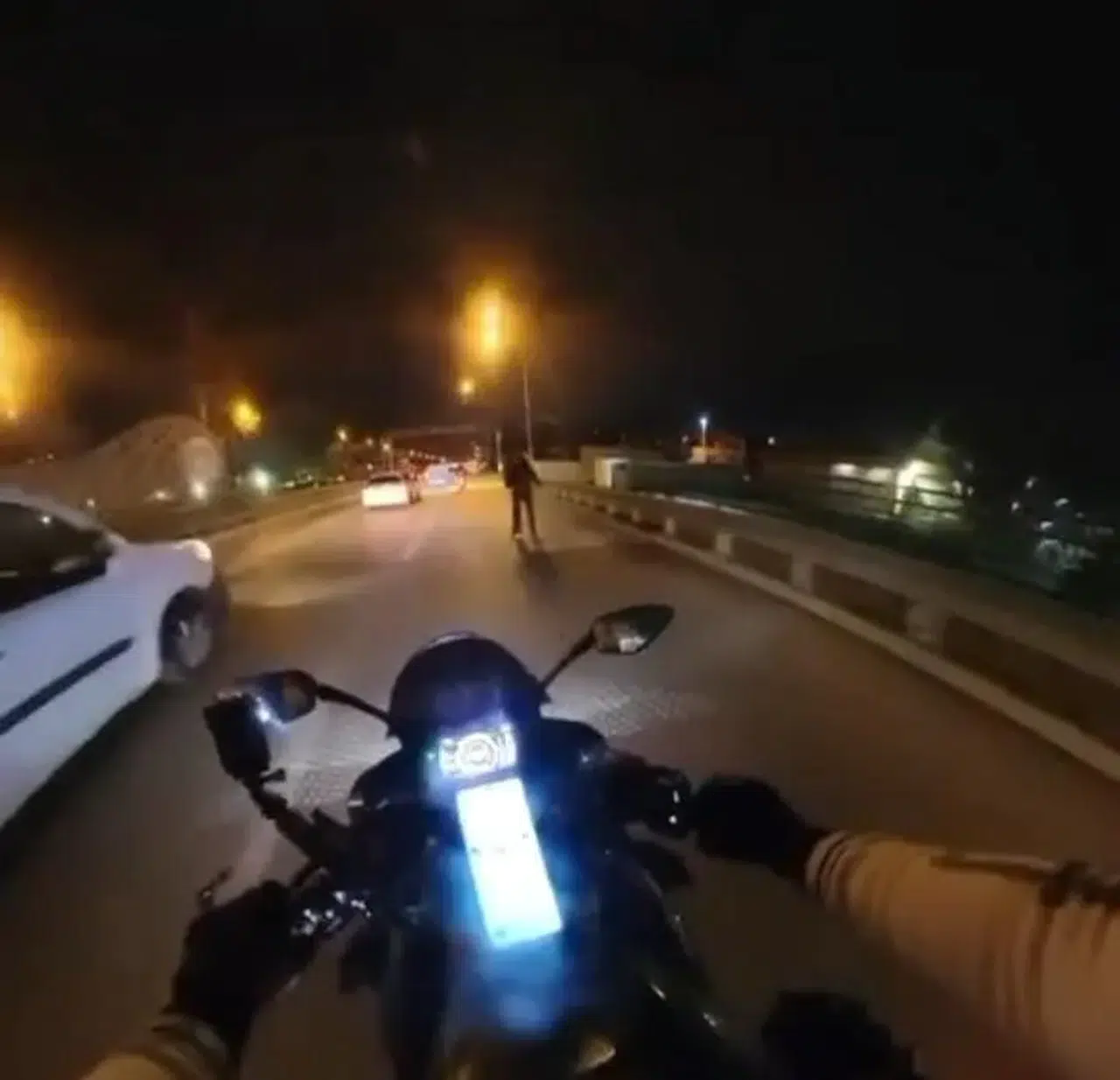 Bursa'nın Yıldırım ilçesi Ankara Yolu üzerinde seyir halinde ilerleyen bir motosiklet sürücüsü, sağ şeritte aniden karşısına çıkan kadını fark edince panik yaşadı. Yola kontrolsüz şekilde çıktığı görülen kadın, motosikletin hemen yanından geçmesi sırasında sürücüye bağırdı.