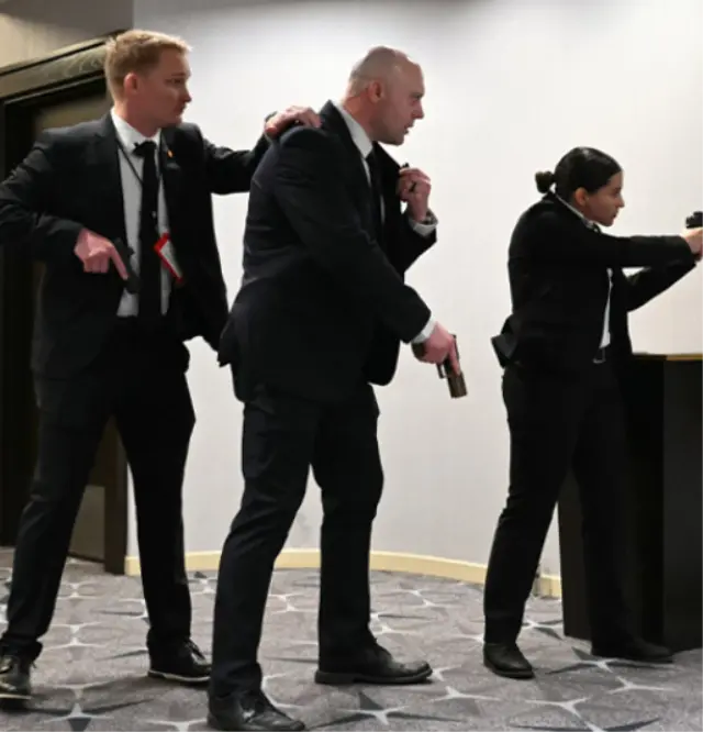 Gizli Servis ajanları, Trump ile birlikte First Lady Melania Trump, Dışişleri Bakanı Marco Rubio ve kabine üyelerini de salondan çıkardı. Olayda kimsenin yaralanmadığı ve ABD Başkanı Trump'ın da güvende olduğu açıklandı.