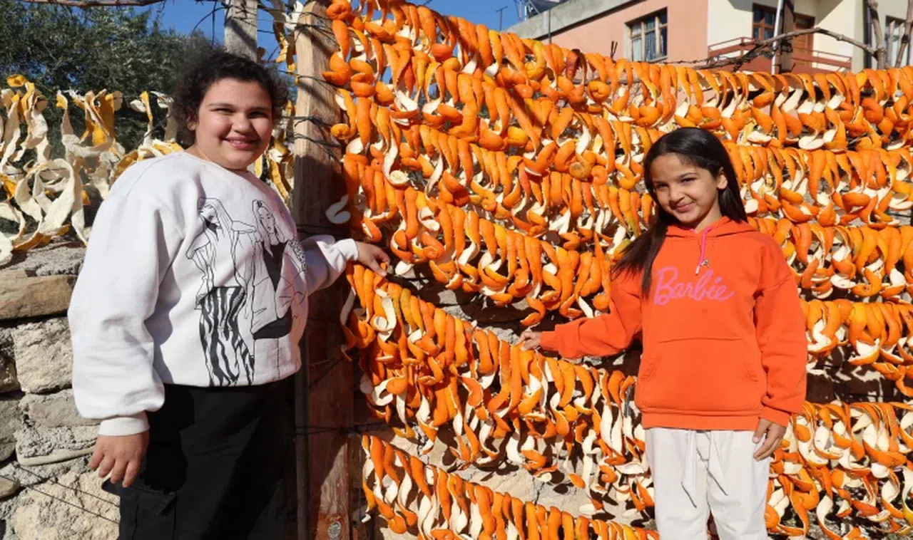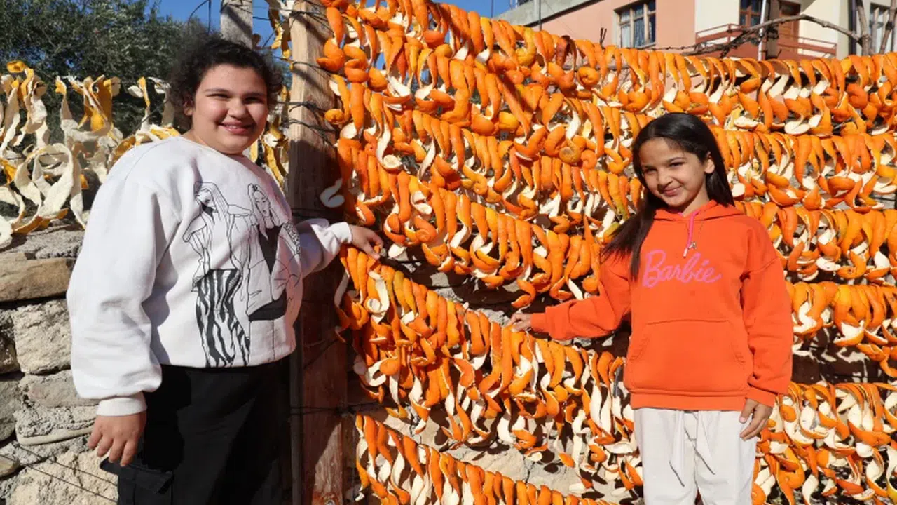 Narenciyenin başkenti Adana'da meyvenin yanı sıra çiftçi, portakal, mandalina ve turunçun kabuğunu çamaşır iplerine asıp kilosunu 20-25 liradan satıyor