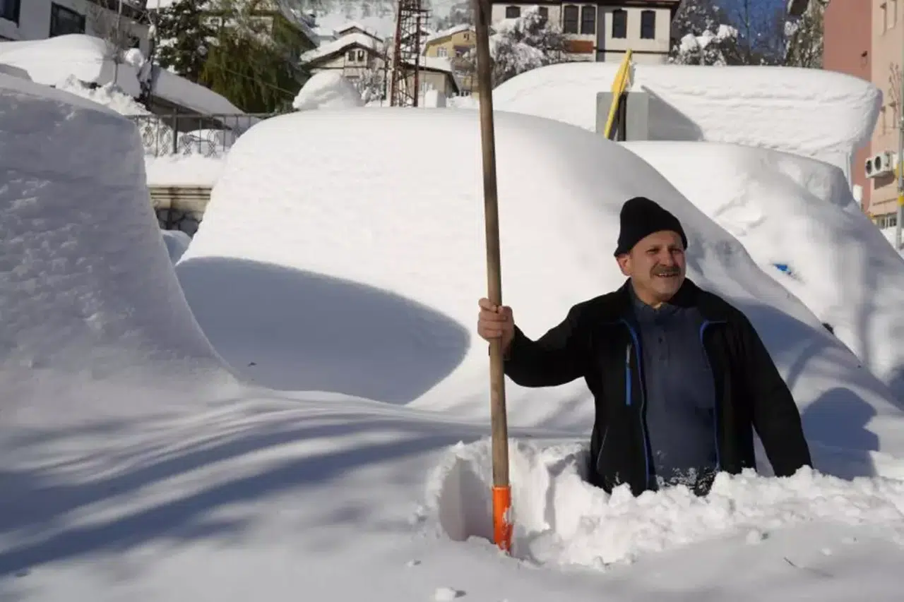 Küre ilçesinde yaşayan Uğur Ersöz, "Yaz ayı kuraklıkla geçti, susuz kaldık. Kurak bir mevsimin ardından kar yağdı. Mutluyuz, huzurluyuz. Yaklaşık şu anda 1,5 metreden fazla kar var. Şimdi de araçlarımızı arıyoruz. Araçlarımızı bulmaya çalışıyoruz, birazdan servise çıkacağız. Ekmek servisine çıkacağız" dedi.