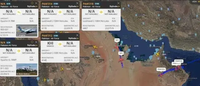 Pakistan ayrıca, savaş uçaklarının havada daha uzun süre kalabilmesi için IL-78 yakıt ikmal tankerlerini de devreye soktu. Lojistik destek için C-130 Hercules uçaklarının kullanıldığı, “gökyüzünün gözleri” olarak bilinen AWACS sistemlerinin ise Pakistan’dan Basra Körfezi’ne kadar hava sahasını sürekli izlediği aktarıldı.
