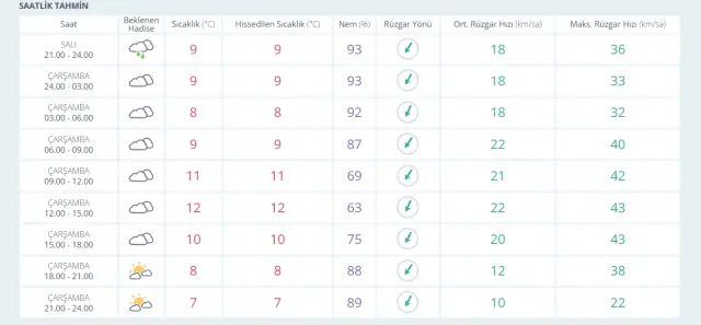 Saatlik tahmin raporu öne çıkıyor