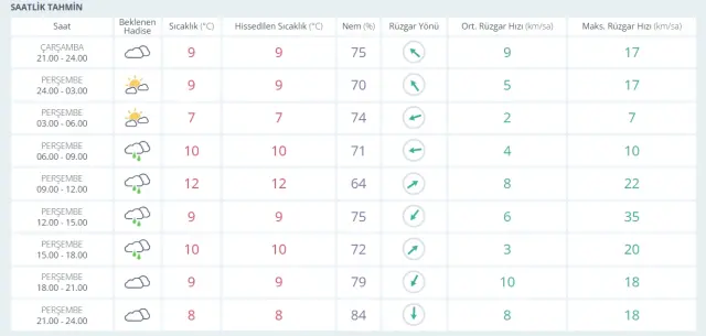 Saatlik tahminler yakından izleniyor