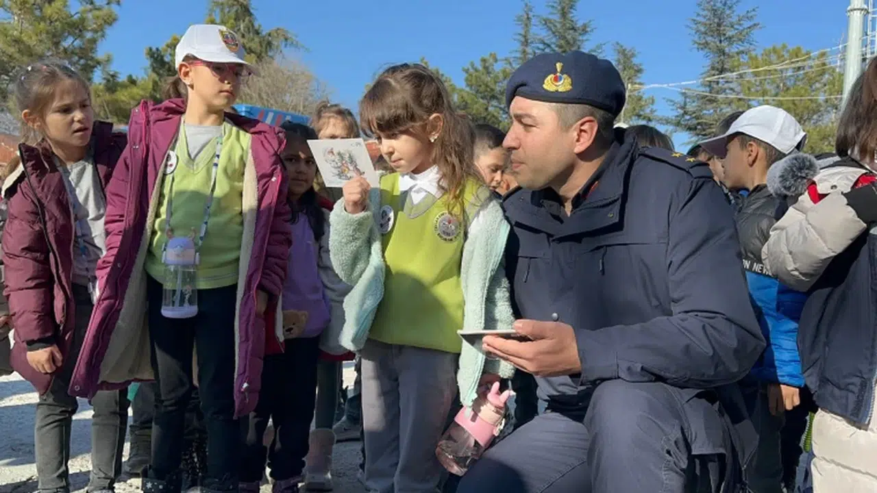 Ardından minikler yazdıkları mektupları İlçe Jandarma Komutanı Üsteğmen Teoman Kaya ve beraberindeki jandarma personellerine teslim etti.
