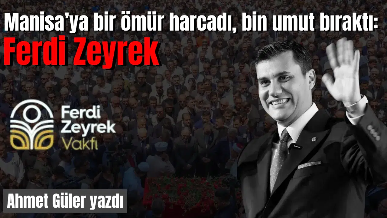 Merhum Ferdi Zeyrek’in adını andıkça her Manisalının içinde bir hüzün belirecek her zaman. Aynı zamanda bir özlem ve bir gurur… Çünkü Manisa için harcanmış, yarım kalmış muhteşem bir hayat öyküsüdür onunki.
