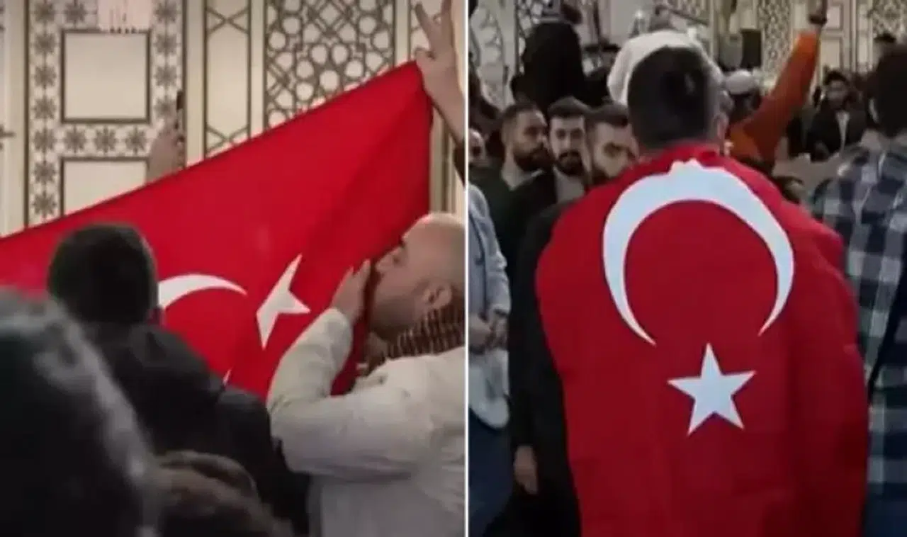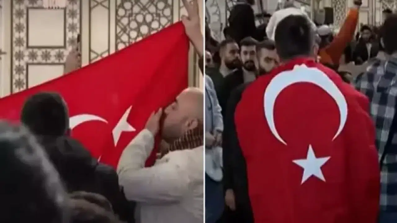 Emevi Camii'nde gelişmeleri aktaran TRT Haber Muhabiri, "Emevi Camii tarihi anlara şahitlik ettik. Özgür Suriye'de binlerce kişi cuma namazını kıldı. Emevi Camii'nde Türk bayrağı kaldırılıyor." dedi. Ekranlara gelen görüntülerde ise Suriyeli bir kişinin Türk bayrağını öptüğü görüldü.