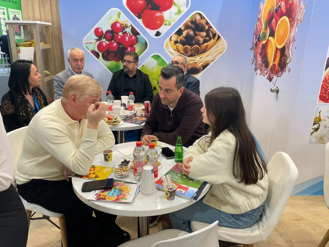 Ege Yaş Meyve Sebze İhracatçıları Birliği standını T.C. Berlin Büyükelçisi Gökhan Turan, T.C. Berlin Ticaret Başmüşaviri Devran Ayık ve T.C. Berlin Ticaret Müşaviri Mehmet Sefa Saral ziyaret etti. Fruit Logistica Fuarı’nda; Ege Yaş Meyve Sebze İhracatçıları Birliği Yönetim Kurulu Başkanı Hayrettin Uçak, Yönetim Kurulu Başkan Yardımcısı Cengiz Balık, Yönetim Kurulu Üyeleri Sadık Demircan ve Vural Güleç, EYMSİB Yaş Meyve Sebze Komitesi Başkanı Makbule Çiftçi, Ege İhracatçı Birlikleri Genel Sekreteri İ. Cumhur İşbırakmaz, Türkiye’nin yaş meyve sebze ihracatının artması için mesai verdiler.