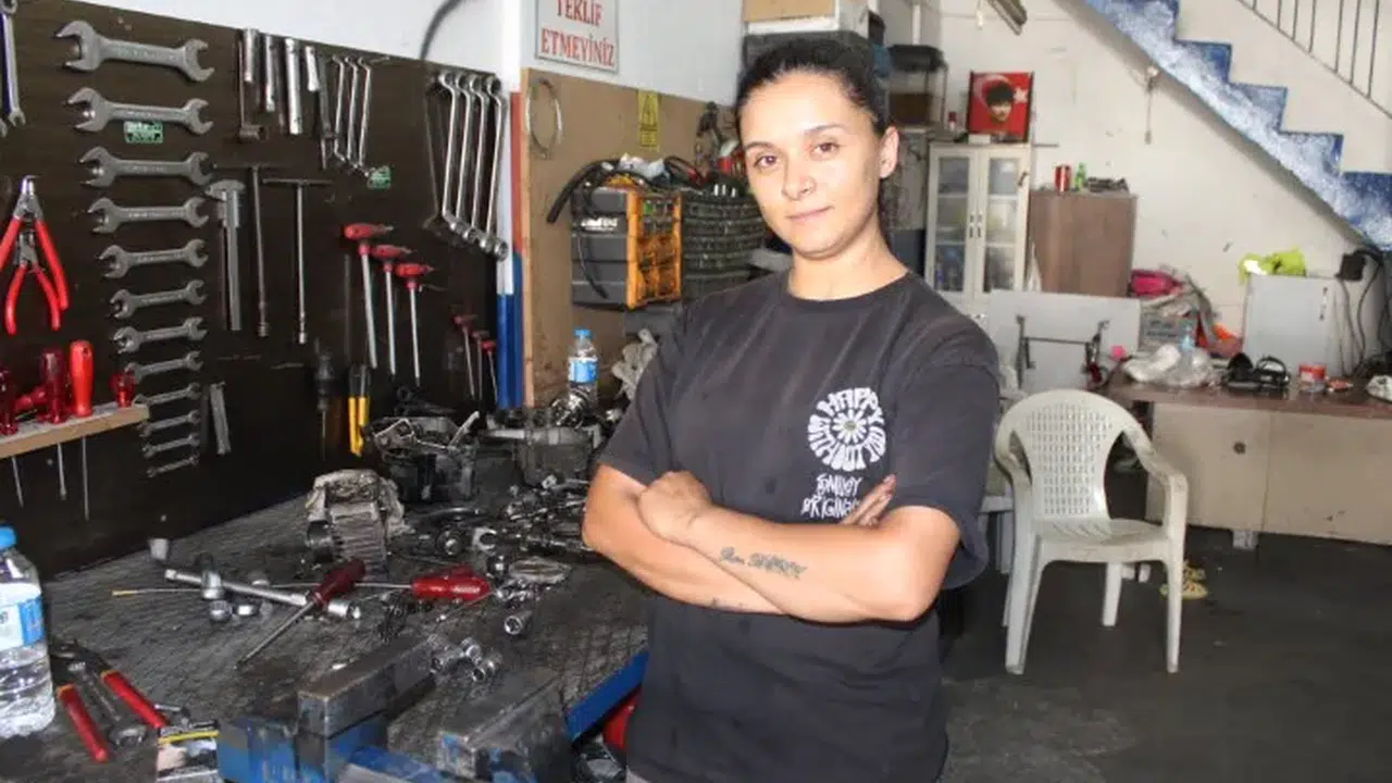 Türkiye’de sanayi sektöründe yaşanan çırak sorunu birçok kadını da meslek sahibi yapmaya devam ediyor. Aydın’ın Efeler ilçesinde çırak bulamayan eşine destek olmak amacıyla sanayiye gelen 2 çocuk annesi 33 yaşındaki Hayriye Gedik de bu kadınlardan biri olurken, kısa sürede işi öğrenerek motor tamir etmeye başladı. Bir yandan eşinin çırağı olarak motor tamirini öğrenen ve evde annelik, sanayide ustalık yapan Hayriye Gedik, azmiyle dikkat çekiyor. Tamire getirilen motosikletlerin arıza tespitini ve tamirini yapan Hayriye Usta, istedikten sonra kadının başaramayacağı hiçbir şey olmadığını söyledi.