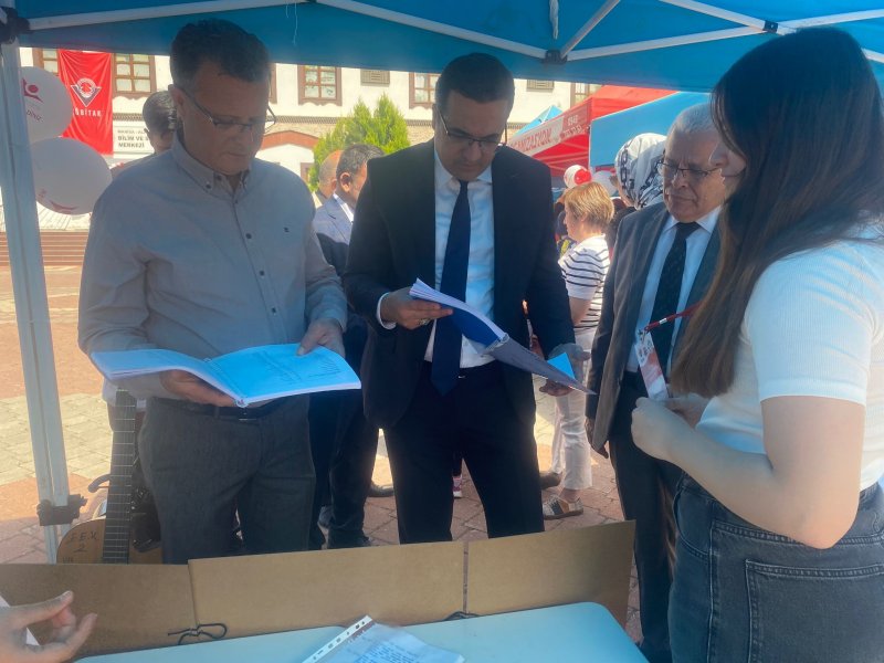 Okul bahçesinde ve Kapalı Spor Salonunda yer alan Ortaokulda TÜBİTAK 4006 Bilim Fuarı içerisinde öğrencilerin projelerini inceleyen protokol üyeleri, öğrencilerden projeleri hakkında bilgiler aldı.
