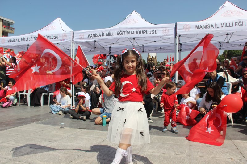Yunusemre ilçesindeki 23 Nisan Ulusal Egemenlik İlkokulu tarafından hazırlanan birbirinden renkli gösteriler bayramı izlemeye gelen vatandaşların büyük beğenisini topladı. Programın en sonunda gösterilerde yer alan öğrenciler aralarına aldıkları dünya maketi içinden onlarca ay yıldızlı balon alkışlar eşliğinde gökyüzüne salınırken, protokol üyeleri ve vatandaşlar gösteriyi hazırlayan çocukları uzun süre alkışladı.