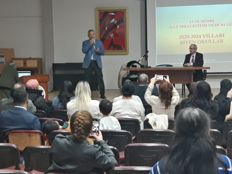 Yunusemre İlçe Milli Eğitim Müdürü Yıldıray Demirtaş, Türkiye Yüzyılı Maarif Modelinin Milli Eğitim Bakanlığı tarafından geliştirilen ve bütüncül bir eğitim yaklaşımını temel alan yeni bir öğretim programı olduğundan ve bu modelin 2024-2025 eğitim öğretim yılından itibaren okul öncesi, ilkokul 1, ortaokul 5 ve lise 9. sınıflardan başlayarak kademeli olarak uygulanmaya başlandığından söz etti. İlçenin akademik başarılarına değinen Demirtaş, 'Bu başarıyı daha da ileriye taşıyacağız' dedi. 2020- 2024 yılları içerisinde 12 yeni okul-202 derslik yapıldığını, 8 okul-128 dersliğin inşaatının devam ettiğini, 8 okulunda güçlendirmelerinin yapılarak tamamlandığını, 2024-2026 yılları yapım programda yeni okulların teklif edildiğini belirtti. Şube müdürü tarafından okul aile birliği başkanlarının görev, yetki ve sorumlulukları hatırlatıldı. Eğitimde ailenin rolü, okul birliklerinin okullara desteği, veli-öğretmen-okul ile iletişim sağlama görevi, sosyal sorumluluk ve toplum hizmetlerinden yapabilecekleri etkinlikler hatırlatıldı. Ailem velivizyon hakkında bilgi verildi.