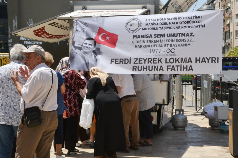 Manisa 155 Nolu Şehir İçi Denetimli Özel Halk Otobüsleri Motorlu Taşıyıcılar Kooperatifi, hayata gözlerini yuman Manisa Büyükşehir Belediye Başkanı Ferdi Zeyrek’i andı. Kooperatif tarafından 15 Temmuz Demokrasi Meydanında lokma hayrı gerçekleştirildi. Manisa 155 Nolu Şehir İçi Denetimli Özel Halk Otobüsleri Motorlu Taşıyıcılar Kooperatifi Başkanı Fevzi Açıkel ve kooperatif üyeleri, Ferdi Zeyrek’in 1. Çatal Asri Mezarlığındaki aile kabristanında kabrini ziyaret etti. Dua etti.