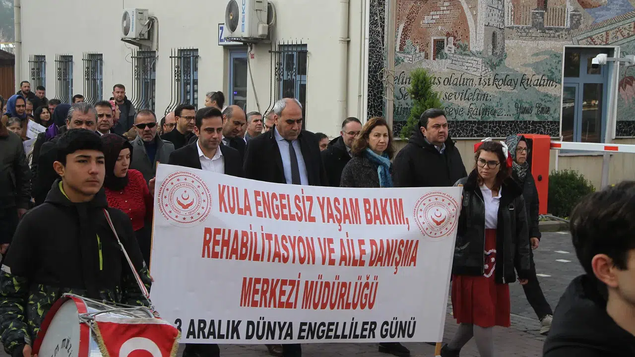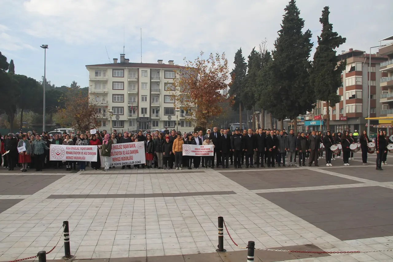 Kula Engelsiz Yaşam Bakım Rehabilitasyon ve Aile Danışma Merkezi tarafından, 3 Aralık Dünya Engelliler Günü dolayısıyla düzenlenen program, Kent Meydanı'nda bulunan Atatürk Anıtı'na çelenk sunulması ile başladı. Kurumun çelenginin sunulmasının ardından engelli öğrenciler ve protokol üyeleri, rengârenk balonları gökyüzüne bırakarak farkındalık oluşturdu. Daha sonra programa katılan protokol üyeleri ve engelli öğrenciler, Selim Sabahat Palanduz Anadolu Lisesi Bando Takımı eşliğinde ilçe merkezinde farkındalık yürüyüşü gerçekleştirdi. Salon programı ise Kültür Merkezi'nde düzenlendi. Saygı duruşunda bulunulması ve İstiklal Marşı'nın okunmasıyla başlayan programda günün anlam ve önemini belirten konuşmayı Kula Engelsiz Yaşam Bakım Rehabilitasyon ve Aile Danışma Merkezi Müdürü Mehmet Artaç yaptı. Konuşmanın ardından engelli öğrenciler ve kurum personelleri tarafından hazırlanan halk oyunları gösterileri, parodi dans gösterisi, şiirlerin okunması, koro gösterisi ve tiyatro gösterileri sergilendi. Büyük çoğunluğu engelli öğrenciler tarafından hazırlanan program, katılımcılar tarafından büyük beğeni topladı.