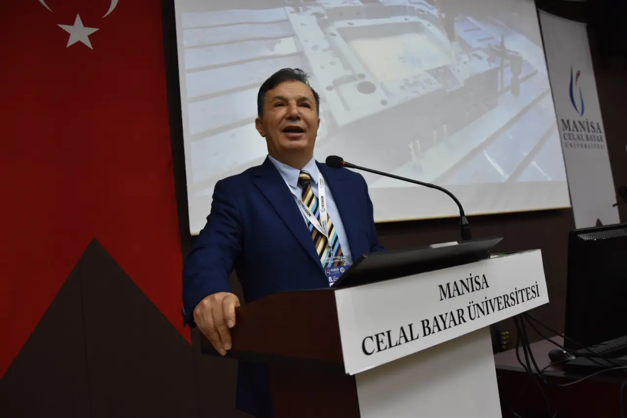 Manisa Celal Bayar Üniversitesi Rektörü Prof. Dr. “Manisa’nın, sanayisiyle güçlü olan bu şehrin savunma ve havacılık sektöründe yeni bir merkez haline gelmesini kendi hedeflerimiz arasına koyduk. Bu yüzden bu çalışmaya ev sahipliği yapmak istedik. Ülkemizin çok güzel bir hedefi var. Sayın Cumhurbaşkanımızın vizyonu doğrultusunda tam bağımsız Türkiye hedefi konuldu. İşte buna ulaşmanın en önemli sac ayaklarından biri de savunma ve havacılık sektörü. Biz de üniversite olarak bu amacı üst sıraya yerleştirdik. Üretim anlayışı değişti. Klasik bir anlayış yok. Otomasyon sistemlerinin ön planda yer aldığı yapay zekanın, dijital dönüşümün ve ileri malzeme teknolojisinin kullanıldığı bir üretim dünyasından bahsediyoruz. Sanayinin ve üretimin temelini oluşturan kalıpçılık sektörü de yeni teknolojiyi kullanarak hizmet vermeye devam eden önemli bir sektör haline geldi. Bu sektörün havacılık ve savunma sanayi kısmında eskiye nazaran çok büyük oranda artan bir payı var. Biz de bu konuda Manisa TEKNOKENT ofisinde çalışmalarımız var. Özellikle savunma sanayiye çok güçlü bir destek veriyoruz. Çok kıymetli bir tesise sahibi ve bu tesis 7/24 çalışıyor. Özellikle savunma ve havacılık sanayimizin liderlerinden ASELSAN, TUSAŞ, ROKETSAN, HAVELSAN başta olmak üzere birçok alana hizmet veriyoruz” dedi.