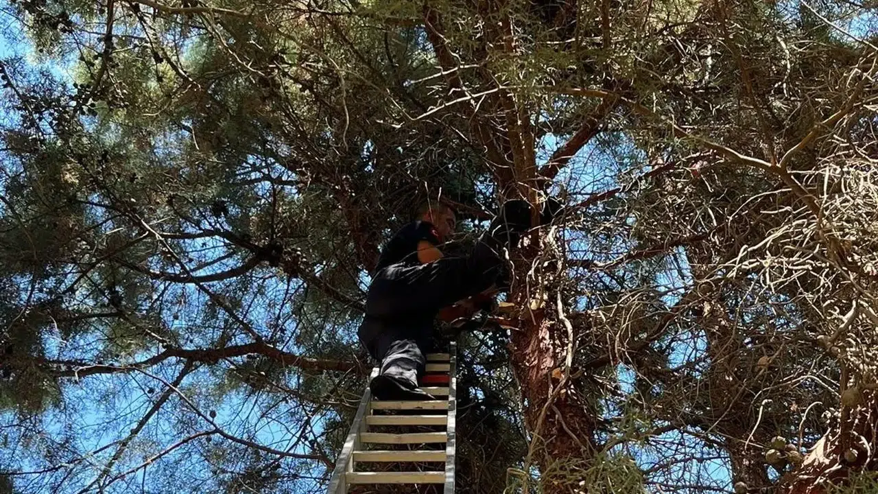 Olay, Kurşunlu Piknik Alanı mevkiinde meydana geldi. Çam ağacında uzun süre mahsur kalan kediyi fark eden vatandaşlar, durumu Manisa Büyükşehir Belediyesi İtfaiye Dairesi Başkanlığına bağlı Salihli Amirliği ekiplerine bildirdi.