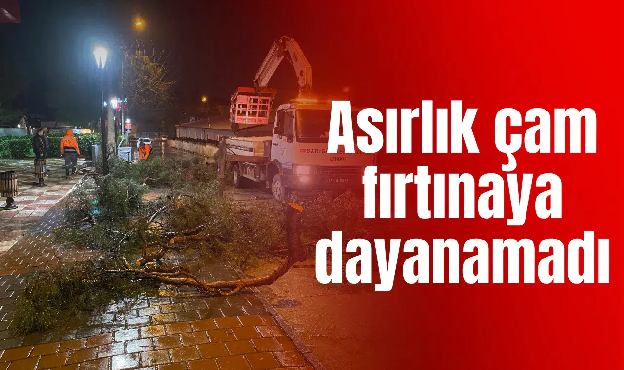 Manisa'nın Alaşehir ilçesinde etkili olan şiddetli yağmur ve rüzgar, yarım asırlık çam ağacını devirdi. Cadde üzerine yan yatan ağaç nedeniyle yol ulaşıma kapanırken, ekiplerin yaklaşık iki saat süren çalışmasının ardından cadde yeniden trafiğe açıldı.