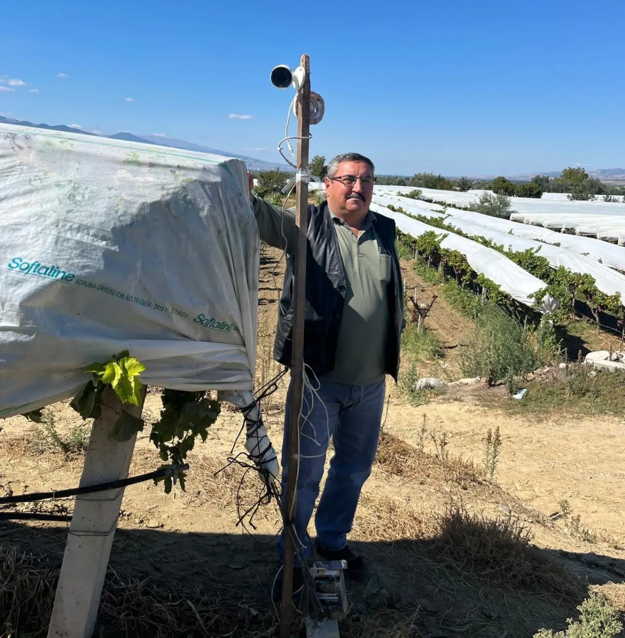Manisa’nın Sarıgöl ilçesine bağlı Özpınar Mahallesi’nde üzüm üreticisi Halil Kılıç, 57 dekarlık üzüm bağını hırsızlara karşı kurduğu güvenlik kameralarıyla koruma altına aldı.