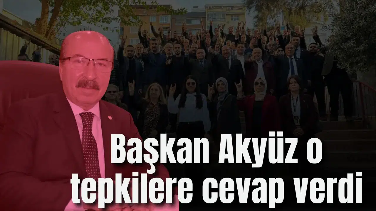 Başkan Akyüz, “Dün kasıtlı olarak çarpıtıldığını düşündüğüm o fotoğraf karesindeki habere istinaden; rakiplerin de teyit ettiği gibi her partiye eşit mesafede olduğumun kanıtıdır. MHP’lisi de, CHP’lisi de AK Partilisi de hangi partiden olursa olsun hepsi bizim üyemizdir ve çok değerlidir. Burada amacım çarpıttıkları gibi odaya siyaset karıştırmak değil, hangi siyasi oluşumda olursa olsun tüm üyelerimizle bir bütün olduğumu kamuoyuna göstermektir. Siyasi bir amaç gözetmeksizin tüm üyelerimizin davetlerine katıldığımı ve bundan sonra da katılacağımı şimdiden kamuoyu bilgisine sunarım. Biz dün ne isek bugün de aynıyız. Umarım bundan sonra art niyetli ve yanıltıcı olduğunu düşündüğüm, bu tip amacını aşan haberlerin son bulacağını düşünüyorum. Saygılar sunarım” diye konuştu.