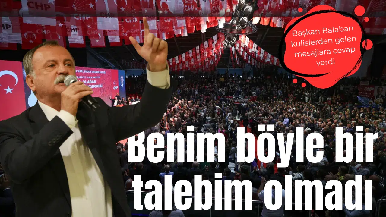 Kongre hakkında konuşan Başkan Balaban, kurultay delegesi olma talebi olmadığını söyleyerek, “Geçtiğimiz 19 Ekim’de İl Kongremiz yapıldı. Sayın İl Başkanımız İlksen Özalper güven tazeledi ve tek aday üzerinde uzlaşıldı. Bunu antidemokratik bir durum olarak değil, aksine Manisa’da Cumhuriyet Halk Partisi’nin birlik ve beraberliğinin en güçlü göstergesi olarak görmek gerekiyor. Herkes İlksen Başkan üzerinde uzlaştı. Kendisi, gelmiş geçmiş en başarılı il başkanlarından biri olmuştur. Çünkü onun döneminde 14 belediye ve büyükşehir kazanılmıştır. Bu başarıyı büyük bir mutlulukla alkışlıyorum. Genel Başkanımız da bana göre çok üstün bir performans sergiliyor. Bizler sonuna kadar, amasız fakatsız Genel Başkanımızın yanındayız. Partimizi iktidara taşıyacağına yüzde 100 inanıyoruz. Basında ve kulislerde bana birçok mesaj geldi; 'Neden kurultay delegesi yazılmadın?' diye soruldu. Burada açıkça söylüyorum: Benim kurultay delegesi olma gibi bir talebim olmadı. "ifadelerini kullandı.
