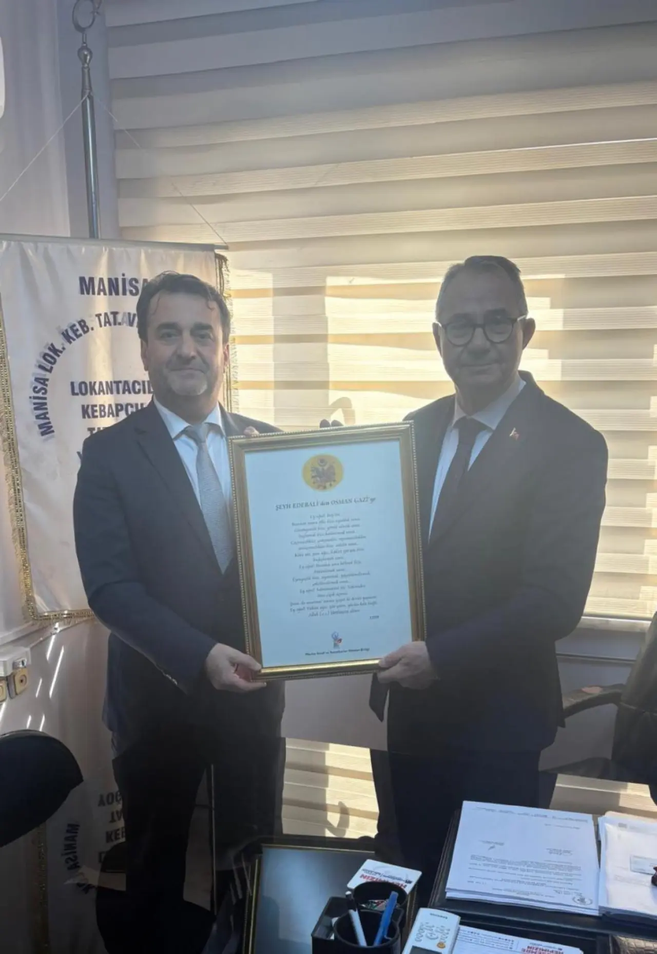 Geriter, Manisa Lokantacılar Kebapçılar Tatlıcılar ve Yoğurtçular Esnaf Odası Başkanımız Şafak Yıldırım, Manisa Kahveciler Esnaf Odası Başkanı Mustafa Emrah Uğursalan, Manisa Şoförler ve Otomobilciler Esnaf Odası Başkanı Cahit Güden. Manisa Madeni Sanatkarlar Esnaf Odası Başkanı Levent Pirinçciler, Manisa Motorlu Araçlar Tamircileri Esnaf ve Sanatkarlar Odası Başkanı Murat Ateşbudak, Manisa Terziler Esnaf ve Sanatkarlar Odası Başkanı Ceyhun Okol, Turgutlu Berberler Esnaf Ve Sanatkarlar Odası Başkanı Alaattin Oral, Soma Esnaf ve Sanatkarlar Odası Başkanı Esin Ayan, Akhisar Demirci Nalbant ve Araba Yapanlar Sanatkarlar Odası Başkanım Süleyman Kağan, Akhisar Marangozlar ve Mobilyacılar Esnaf ve Sanatkarlar Odası Başkanı Ümit Kaya, Akhisar Kahveciler Esnaf Odası Başkanı Ali Akkuzu, Akhisar Tuhafiyeciler ve Manifaturacılar Esnaf Odası Başkanı Salih Talkan, Saruhanlı Esnaf ve Sanatkarlar Odası Başkanı Gürcan Cengiz, Salihli Esnaf ve Sanatkarlar Odası Başkan Emre Demir, Salihli Lokantacılar ve Gazinocular Esnaf Odası Başkanı Ahmet Tekin, Salihli Manavlar ve Pazarcılar Esnaf Odası Başkanı Osman Göl, Salihli Bakkallar Esnaf Odası Başkanı Özcan Çetin’i ziyaret etti.