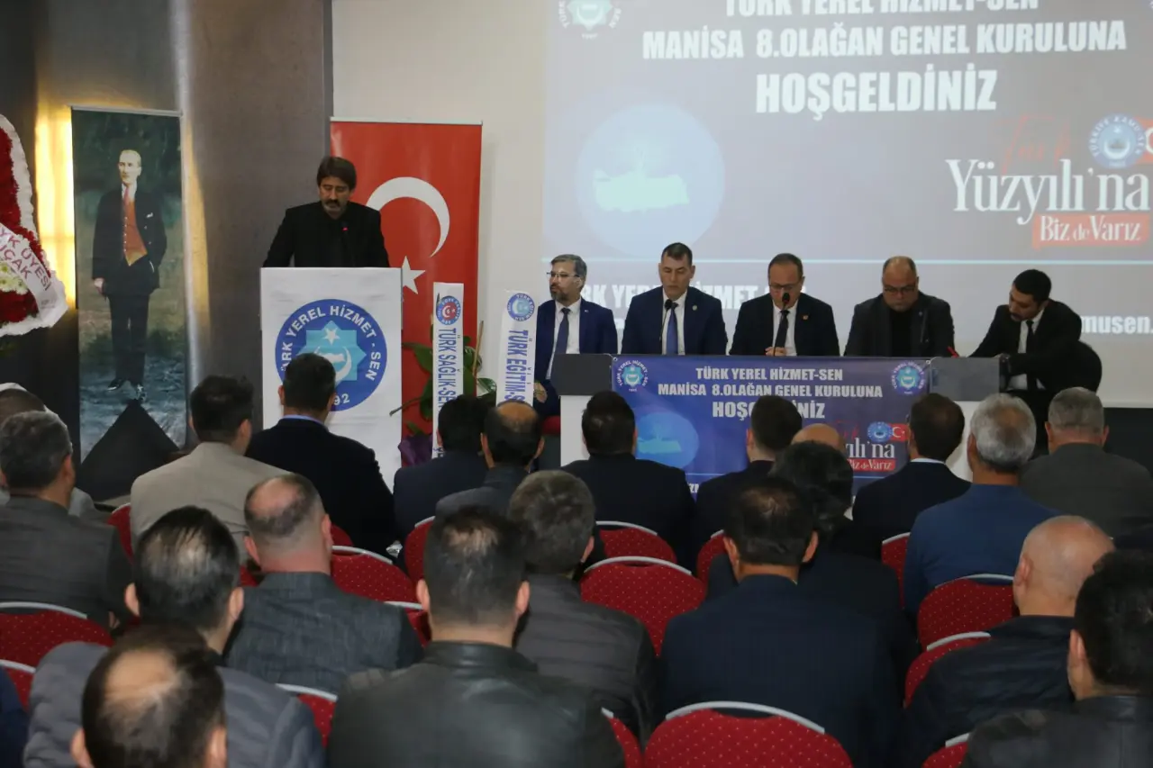 Türk Yerel Hizmet Sen Manisa Şubesi 8. Olağan Genel Kurulu Pazar günü delegelerin takılımı ile gerçekleştirildi. Kurulda mevcut başkan Hakan Göktaş ikinci kez başkan olarak seçildi. Sendikacılığın makam olmadığını bir sorumluluk olduğunu dile getiren Göktaş “ Sendikacılık; üyelerimizin derdiyle dertlenmek, kimsesizlerin sesi olmak, haksız gördüğünde en yüksek perdeden “dur” diyebilmektir. Bize düşen, birliği büyütmek, dayanışmayı güçlendirmektir. Çünkü biliriz ki: Ayrı düştüğümüzde zayıf, Bir olduğumuzda ise güçlüyüz. Bugün buradan güçlü bir mesaj veriyoruz: Birlikteyiz, kararlıyız, dimdik ayaktayız! Biz bir oldukça, hiçbir güç bizi durduramaz! Bugüne kadar olduğu gibi bugünden sonra da şubemizi; şeffaf, ilkeli, onurlu, boyun eğmeyen sendikacılık anlayışıyla yönetmeye devam edeceğiz.” dedi.