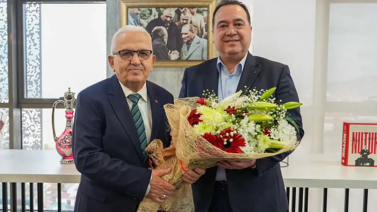 Manisa Büyükşehir Belediye Başkanı Besim Dutlulu, Manisa 22. Bölge Esnaf ve Sanatkarlar Kredi Kefalet Kooperatifi Birliği (MESKOB) Başkanı Recep Çınar’ı ve yönetim kurulu üyelerin ağırladı.