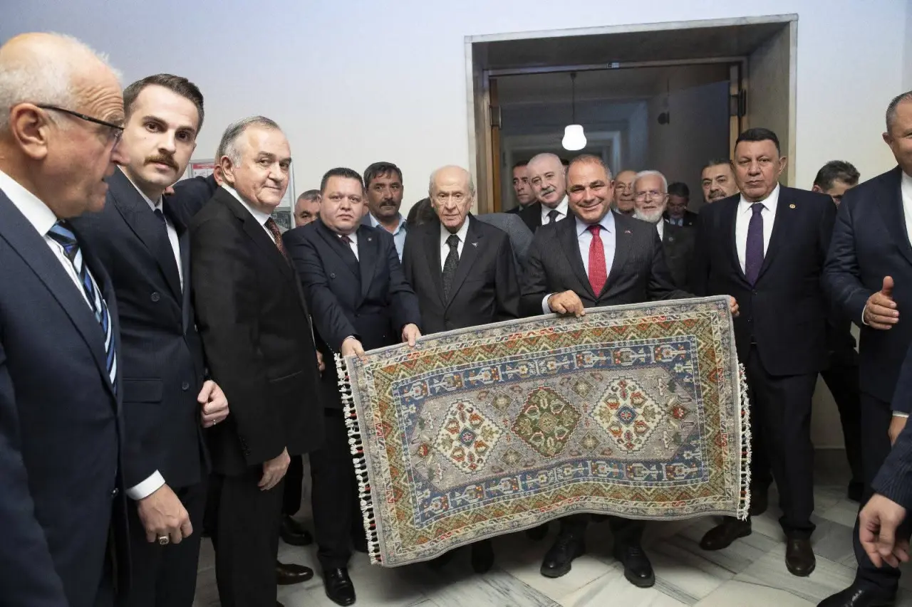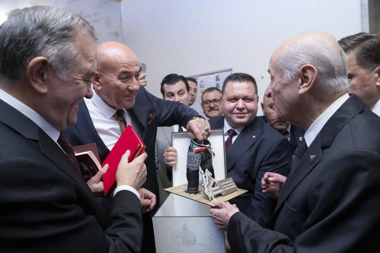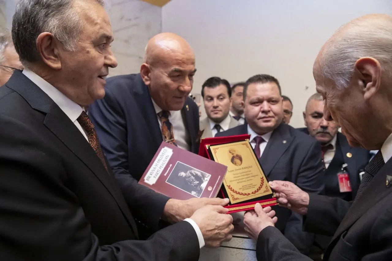 Grup Toplantısı’nın ardından MHP İl Başkanı Cüneyt Tosuner, Genel Başkan Devlet Bahçeli’ye çeşitli hediyeler takdim etti. Gerçekleştirilen görüşmede Tosuner, Bahçeli’ye Manisa teşkilatının sahada yürüttüğü çalışmalar hakkında kapsamlı bilgiler sundu.