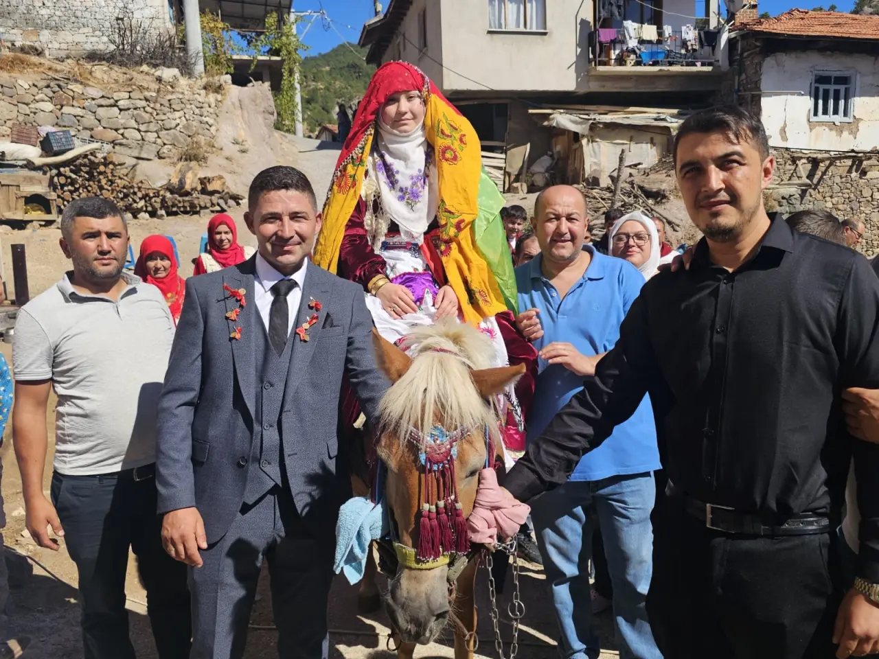 Manisa’nın Demirci ilçesine bağlı Ören Köyü, yüzyıllardır süregelen köklü düğün gelenekleriyle dikkat çekiyor. Köyde yapılan düğünlerde, gelinler baba evinden yöresel gelinlikleriyle, tekbirler ve dualar eşliğinde çıkıp ata biniyor. Seymen Ekibi’nin ve köy halkının eşlik ettiği bu gezinti, davetlilere otantik ve görsel bir şölen sunuyor. Geçtiğimiz günlerde gerçekleşen Zeynep - Abdülkerim Yıldız çiftinin düğününde de aynı gelenek yaşatıldı. Gelin Zeynep, kadife fistan üzerine 7-8 farklı renkte graf örtülü yöresel kıyafetini giydi, başına fes ve baskı taktı. Ardından at üzerinde köyün sokaklarında Seymen Ekibi ile birlikte dolaştı. Benzer şekilde geçtiğimiz ay yapılan Elif - Emre Özkan çiftinin düğününde de gelin Elif aynı gelenekle baba evinden uğurlanmıştı.