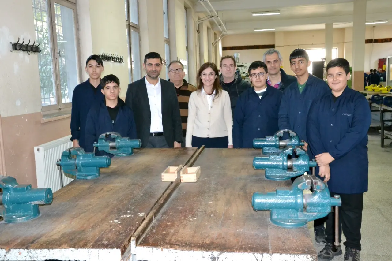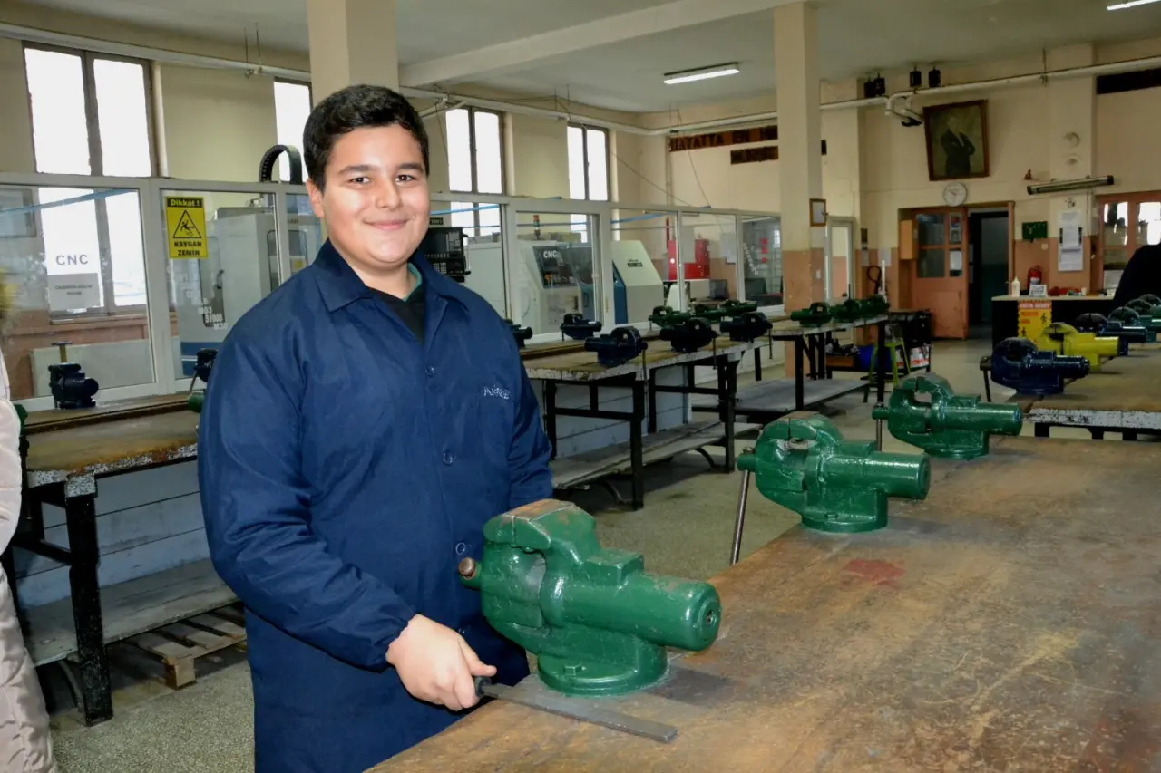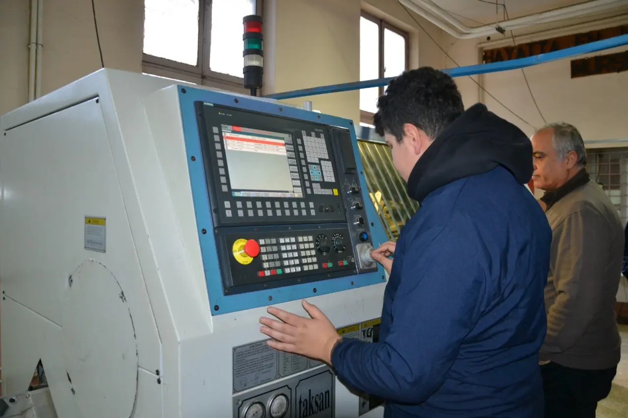 Makine ve Tasarım Teknolojisi Alanı Dal Şefi Hüseyin Kuloğlu, “Öğrencilerimiz burada 9. sınıftan başlayarak 9, 10, 11'i okulumuzda eğitim öğretim faaliyetine devam etmekte. 12. sınıfta çocuklarımızı işletmede meslek eğitimine gönderiyoruz. 406 tane öğrencimiz var. Bunların yaklaşık 10 tanesi kız öğrenci. 50-55'e yakın işletmemiz var. Çırak öğrencilerimiz var 50 yakın. Güçlü olduğumuz taraf CNC bölümümüz güçlüdür. Elektrikte de otomasyon bölümümüz güçlü. Çocuklar 9. sınıfta temel imalat işlemleri ve teknik resim derslerini görüyorlar. Daha önceleri 9. sınıflarda böyle bir eğitim yoktu. Geçen yıldan itibaren daha böyle bir eğitime geçildi. Öğrencilerimiz mezun olduklarında çok rahatlıkla işe girebilmekteler. Manisa Organize Sanayi Bölgesi'nde, Muradiye Organize Sanayi Bölgesi'nde savunma sanayisine iş yapan çok çeşitli firmalarımız var. Bizim öğrencilerimize de bu yönde bir talep var. Elmas projesini bu bakımdan önemsiyoruz. Elmas projesi ile Manisa'daki savunma sanayi faaliyetinin ve üretim faaliyetlerinin ihracat faaliyetlerinin bir üst noktaya taşınacağına inanıyoruz. Çalışma teknolojik gelişmeleri ve yayınları takip etmeye çalışıyoruz. Özellikle öğrencilerden ders esnasında projeksiyon cihazı, akıllı tahtalardan istifade ederek çalışmalarımızı yürütüyoruz” dedi.