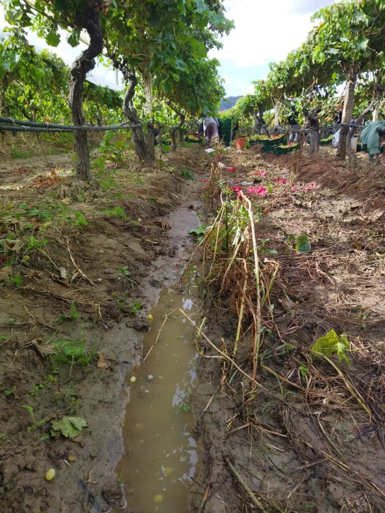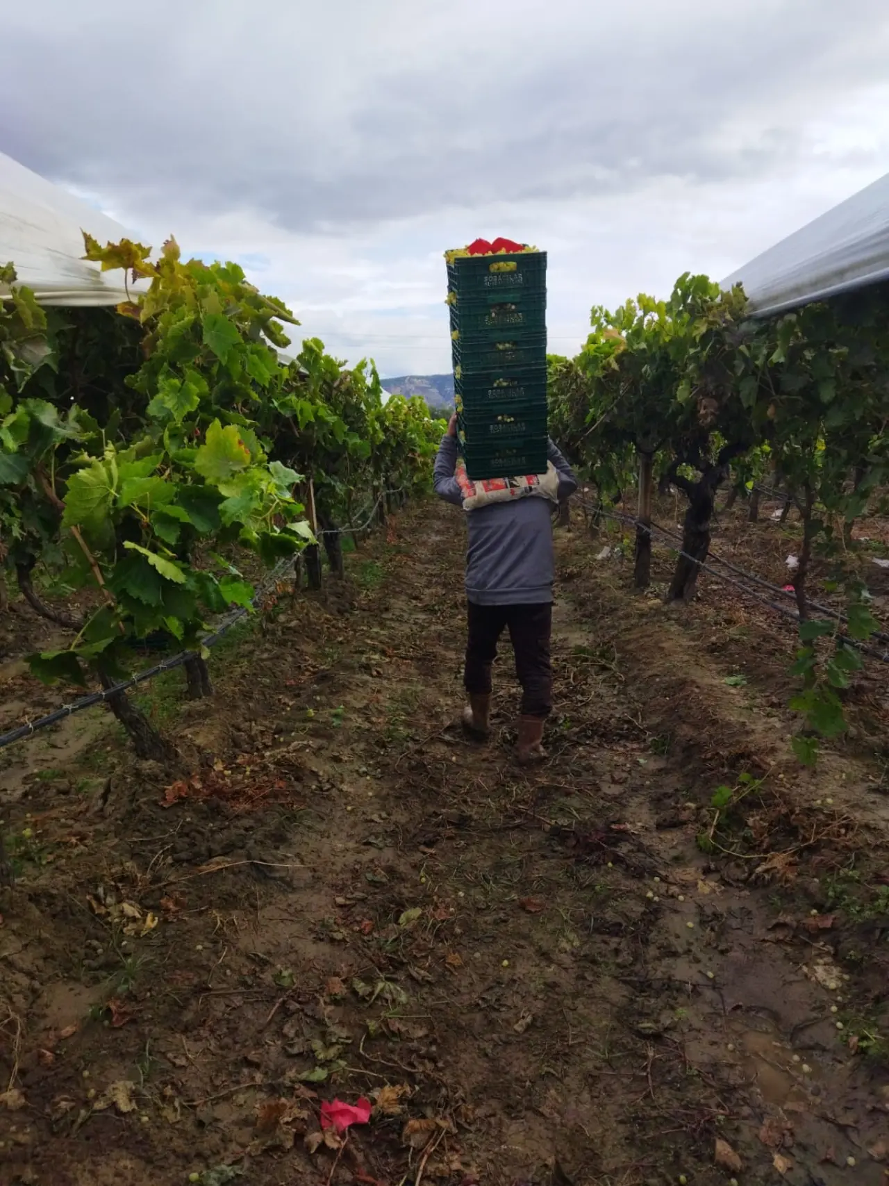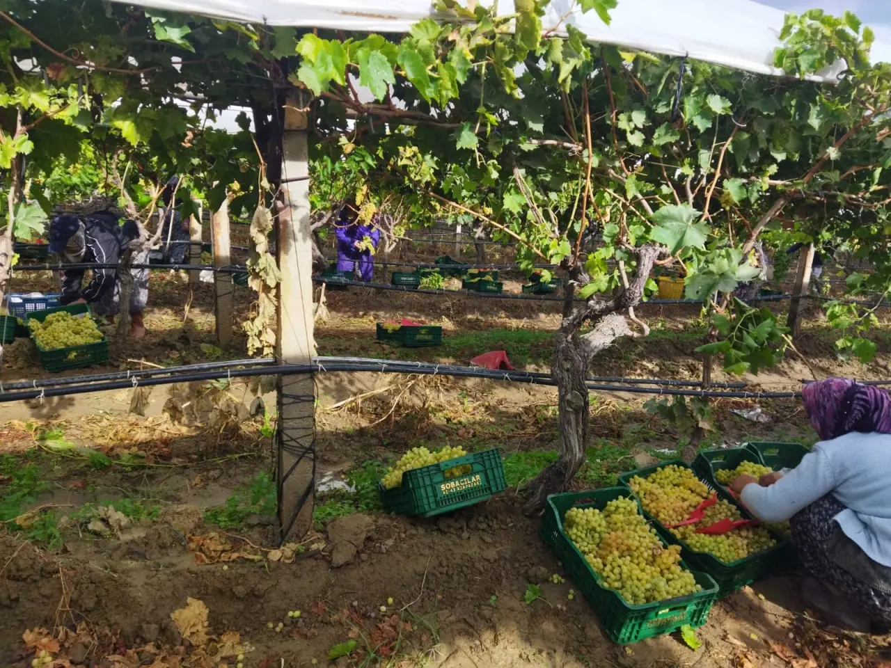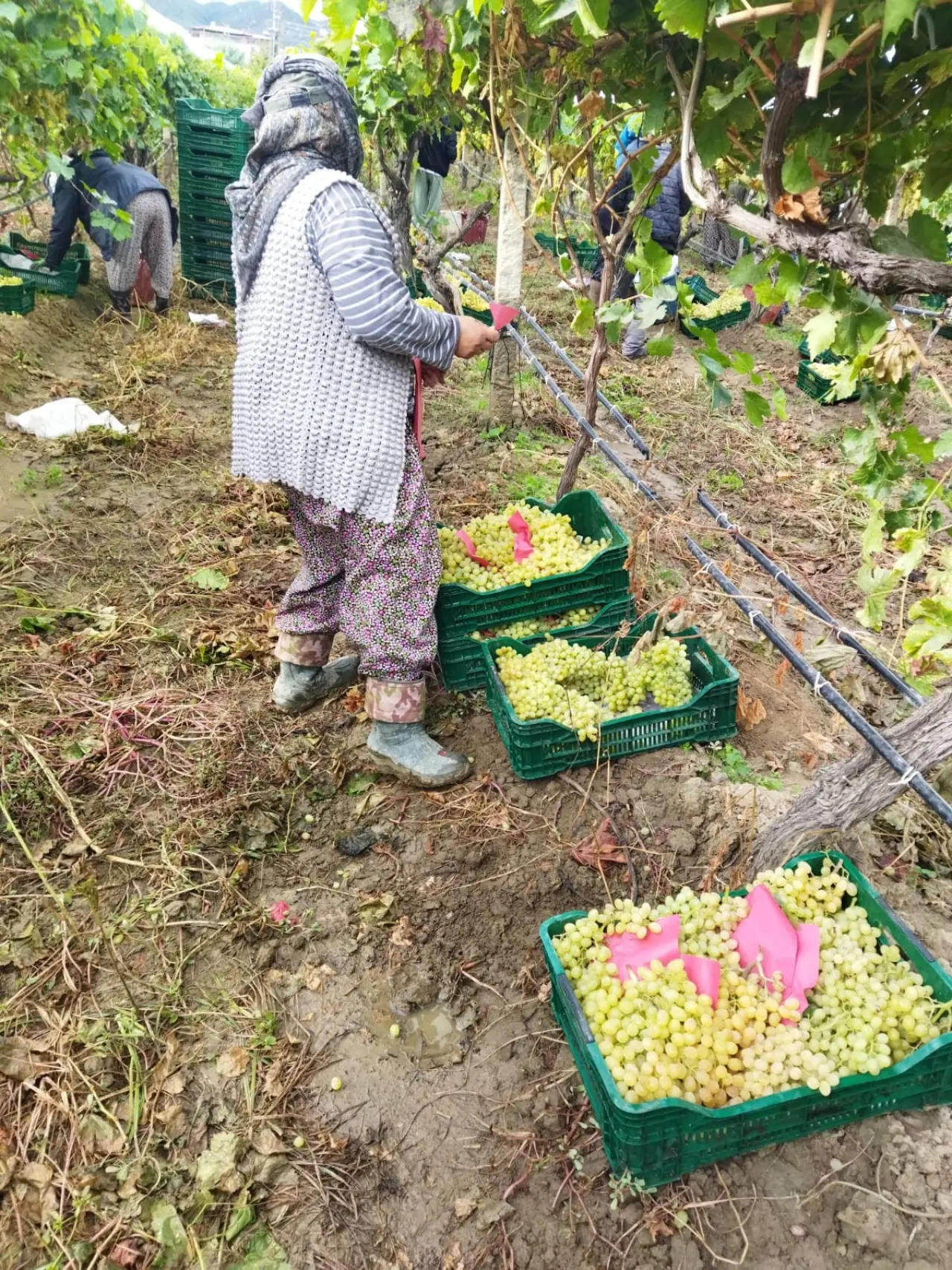 Sarıgöl ovasının dünyaca ünlü çekirdeksiz sofralık Sultaniye üzüm bağlarında iki gündür devam eden yağışlara rağmen kesim işleri aralıksız devam ediyor. Sabahın erken saatlerinde yola çıkan tarım işçileri yaş olan üzüm bağının içerisinde ayaklarına çizme veya bot giyerek kesim ve kamyona yükleme işlerini tamamlıyorlar. Zor şartlara rağmen üzüm hasadını sürdüklerini belirten tarım işçisi Raziye Esmeray, "İşçi için verilmiş günümüz var. Ayrıca sıkıca giyinerek çalışmalarımızı aksatmıyoruz" dedi.
