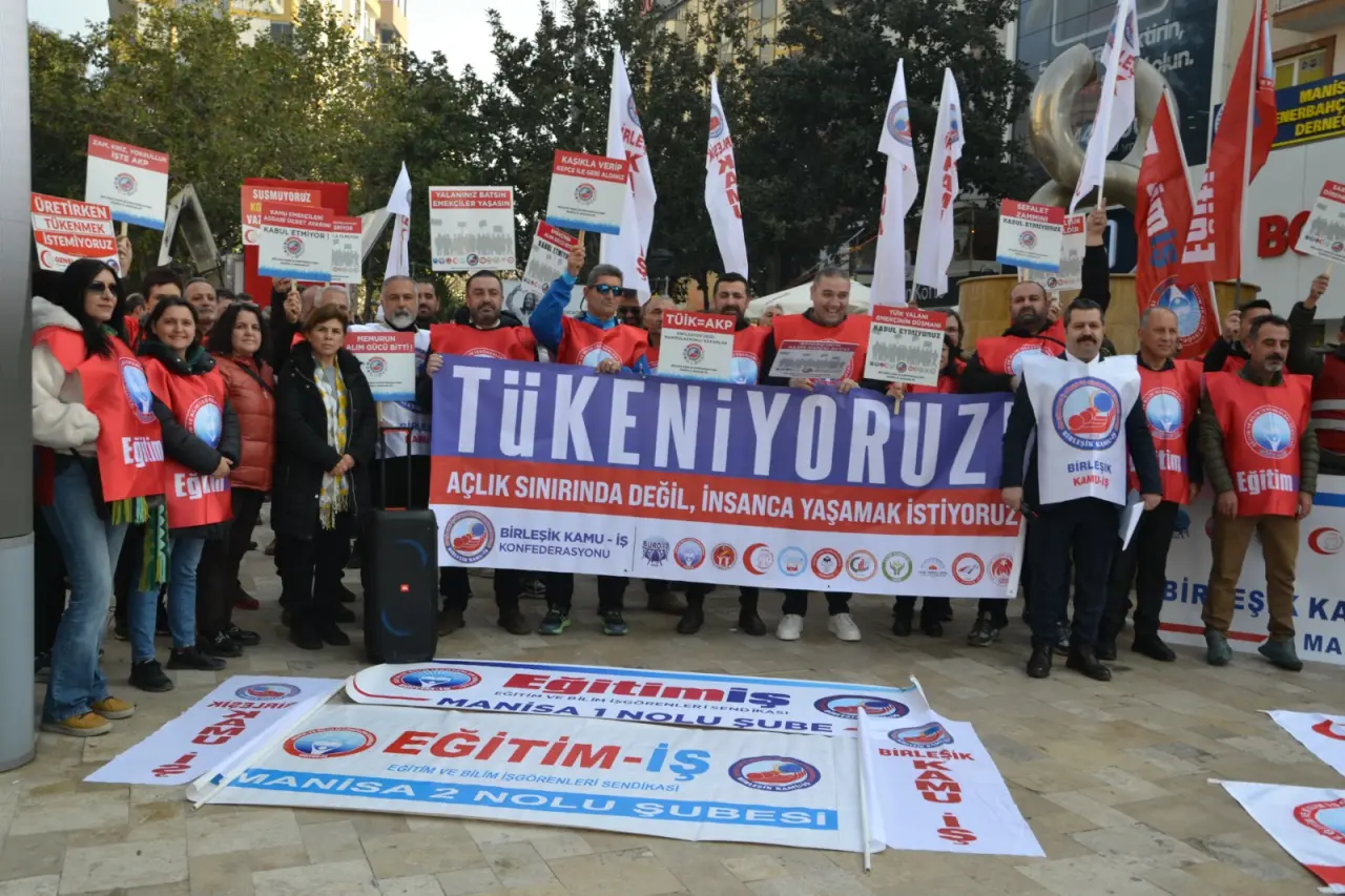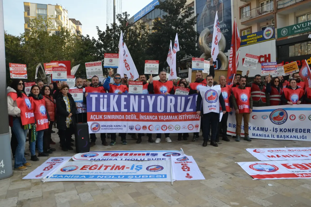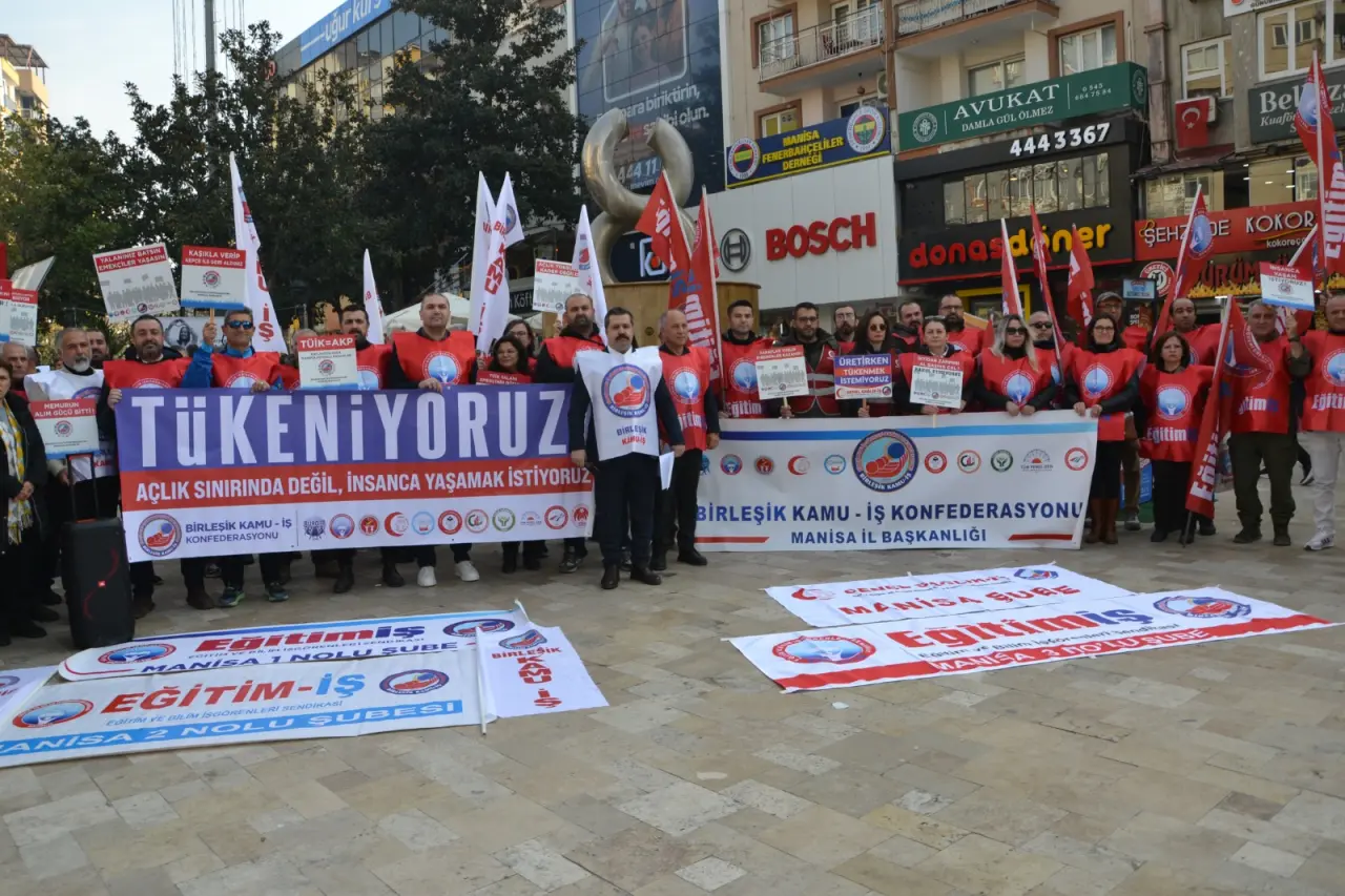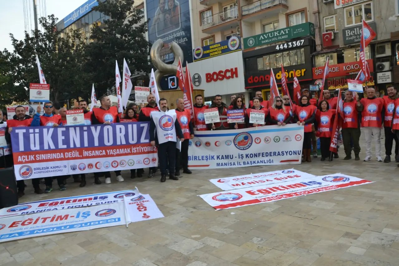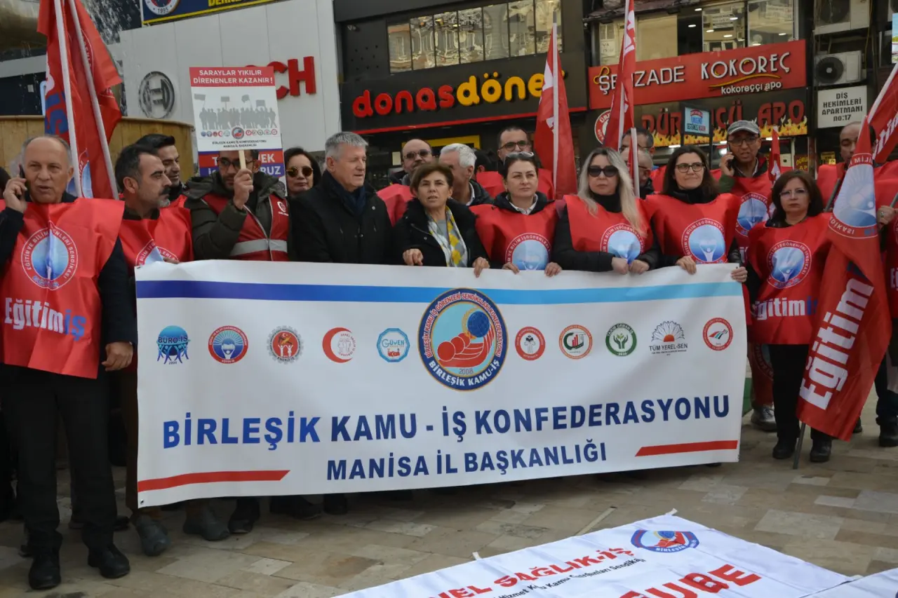 Birleşik Kamu İş Konfederasyonu’na bağlı sendikalar, hükümetin bütçe politikalarına tepki göstermek amacıyla Manisa’da 1 günlük iş bırakma eylemi yaptı. Kamu emekçileri, Manolya Meydanı’nda toplanarak basın açıklaması gerçekleştirdi.