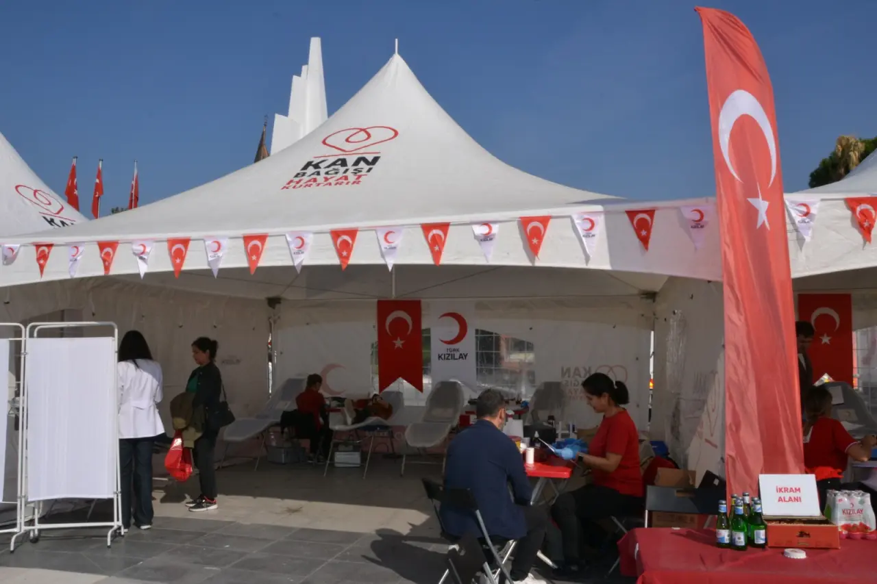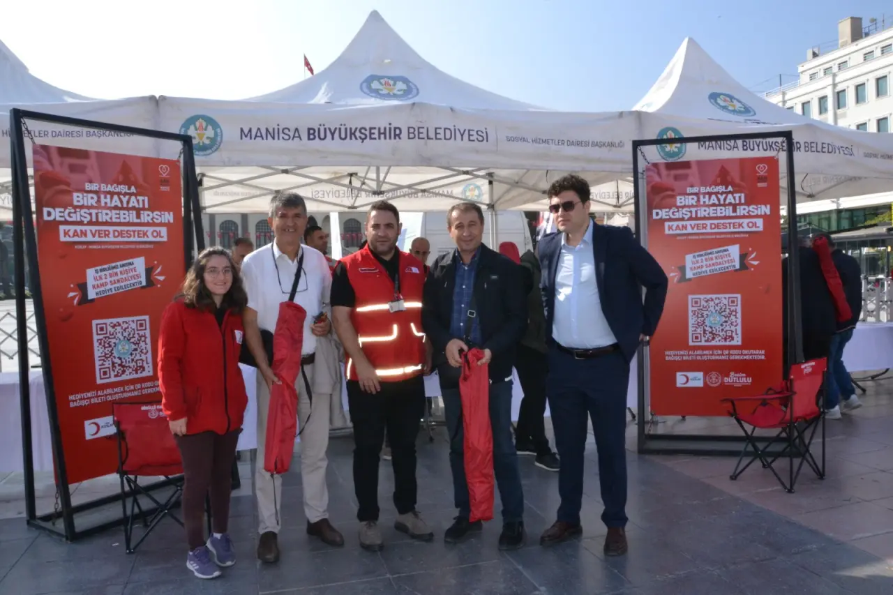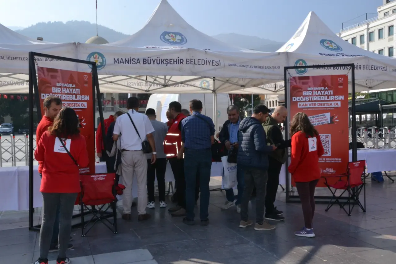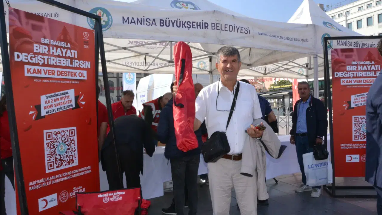 Manisa Büyükşehir Belediyesi ile Türk Kızılay'ı Ege Bölge Kan Merkezi Müdürlüğü, örnek bir sosyal sorumluluk projesine daha imza attı. Cumhuriyet Meydanında gerçekleşen kan bağışı kampanyasına Manisalılar yoğun ilgi gösterdi. Kan bağışının önemine dikkat çekmek amacıyla 17 Ekim 2025 Cuma günü saat 23.00’a kadar devam edecek olan etkinlikte kan bağışında bulunan ilk 2 bin kişiye kamp sandalyesi hediye ediliyor.