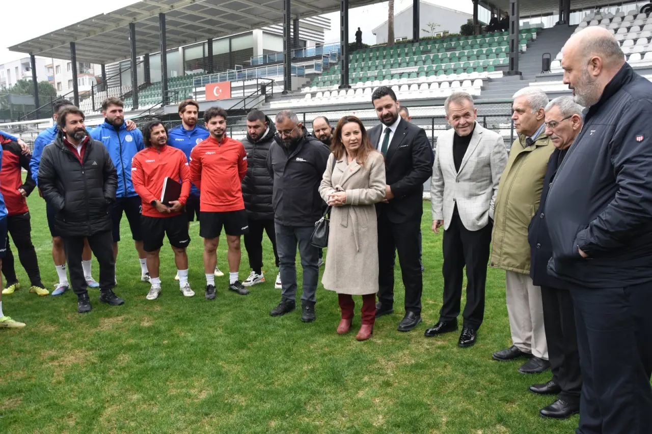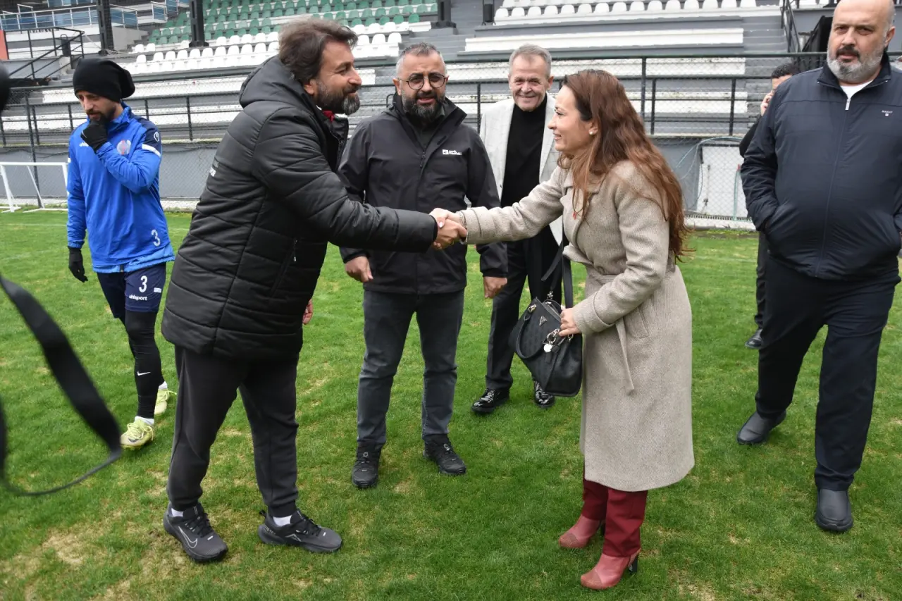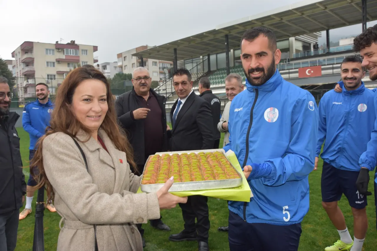 CHP Manisa İl Başkanı İlksen Özalper, Bölgesel Amatör Ligde mücadele eden Nurlupınarspor’un antrenmanını ziyaret etti. Uncubozköy Tesisleri’nde gerçekleşen ziyarette CHP Şehzadeler İlçe Başkanı Mert Özkösemen, Şehzadeler Belediye Meclis Üyesi Gökay Budak, Abdurrahman Aras ve Hayrullah Solmaz yer aldı. Başkan Özalper futbolculara ve teknik heyete baklava ikram etti. Topun başına geçip şut çekti.