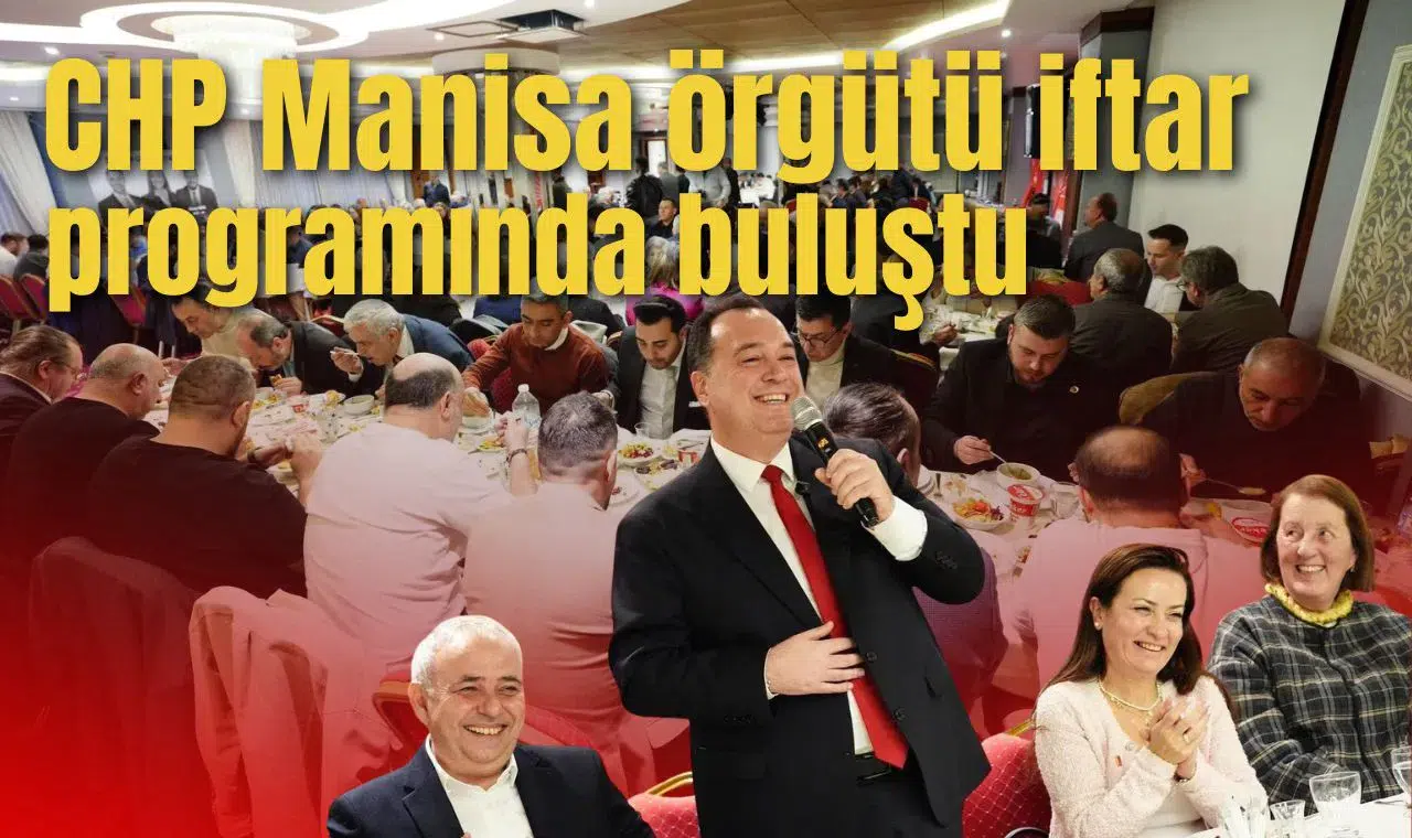 CHP Manisa Örgütü iftar programında bir araya geldi. İftar programına CHP Manisa İl Başkanı İlksen Özalper’in yanı sıra CHP Manisa Milletvekilleri Selma Aliye Kavaf, Ahmet Vehbi Bakırlıoğlu ve Bekir Başevirgen katıldı. Programda ayrıca Besim Dutlulu, il yönetim ve disiplin kurulu üyeleri, ilçe başkanları, ilçe belediye başkanları, geçmiş dönem il ve ilçe başkanları ile partinin kadın ve gençlik kolları temsilcileri de yer aldı.Kadın Kolları Başkanı Gülbahar Tahmilci ile ilçe kadın kolları başkanları ve Gençlik Kolları Başkanı Onur Çabuk ile ilçe gençlik kolları başkanlarının da katıldığı programda partililer Ramazan ayının birlik ve dayanışma ruhunu aynı sofrada paylaştı. Yoğun katılımın olduğu iftar programında CHP Manisa örgütü, birlik ve beraberlik mesajı verdi. Program, partililerin sohbet etmesi ve hatıra fotoğrafları çekilmesiyle sona erdi.