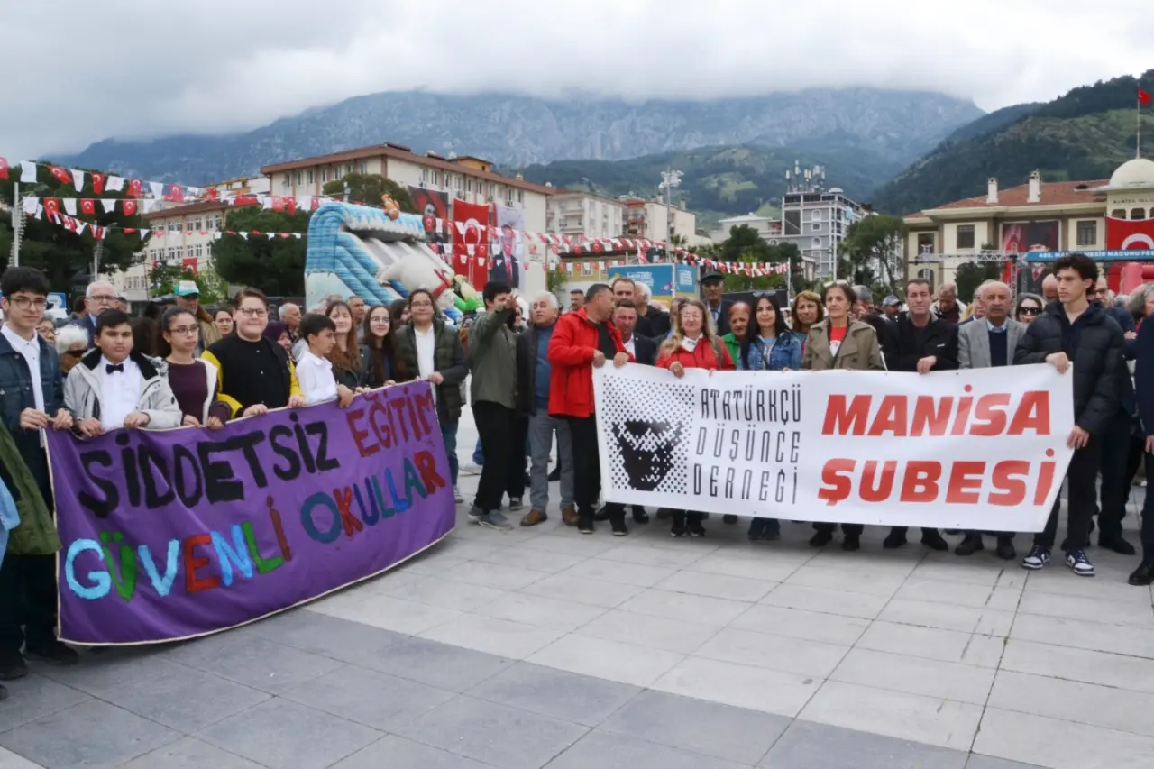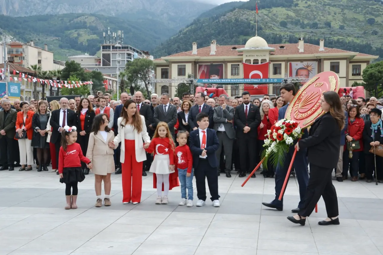 Cumhuriyet Meydanı’nda bulunan Atatürk ve Milli Egemenlik Anıtı önünde düzenlenen törene Manisa Büyükşehir Belediye Başkanı Besim Dutlulu, CHP Manisa İl Başkanı İlksen Özalper, Şehzadeler Belediye Başkanı Hakan Şimşek, Yunusemre Belediye Başkanı Semih Balaban, CHP Yunusemre İlçe Başkanı Yalçın Arcak, CHP Şehzadeler İlçe Başkanı Mert Özkösemen, sivil toplum kuruluşları katıldı. CHP Manisa İl Başkanı İlksen Özalper, çocuklarla birlikte anıta çelenk sundu. Burada CHP Gençlik Kolları ve Atatürkçü Düşünce Derneği’nden birer temsilci konuşma yaptı.