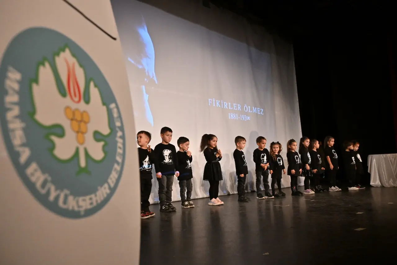 Manisa Büyükşehir Belediyesi Kültür ve Sosyal İşler Dairesi Başkanlığı bünyesindeki ÇKSM’lerde eğitim gören geleceğin teminatı minik öğrenciler, büyük bir özenle hazırlandıkları programda, okudukları şiirler ve söyledikleri şarkılarla salondaki herkesi derinden etkiledi. Öğretmenlerinin rehberliğinde hazırlanan öğrenciler, 2 Şubat 1938 tarihinde Bursa Belediyesi tarafından düzenlenen ve Atatürk’ün katıldığı son baloyu temsili olarak canlandırdı. Minikler, vals ve zeybek figürleriyle o tarihi anları adeta yeniden yaşatarak izleyenlere hem hüzün hem de gurur dolu anlar yaşattı.