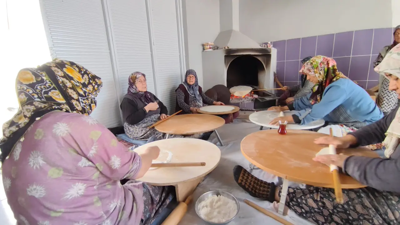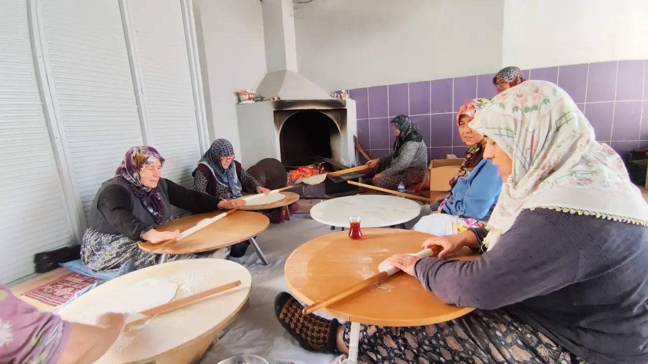 Kış hazırlıkları arasında yer alan bu gelenek, mahallede yaşayan ve yaşları 60 ile 80 arasında değişen 11 çocukluk arkadaşı tarafından yaşatılıyor. Geniş bahçesiyle uygun ortam sağlayan Şükriye Pekcan’ın evi, yıllardır buluşma noktası olurken, her yıl sonbahar aylarında bir araya gelen kadınlar, hem kendi aileleri hem de çocukları için odun ateşinde pişirdikleri yufkaları hazırlıyor.