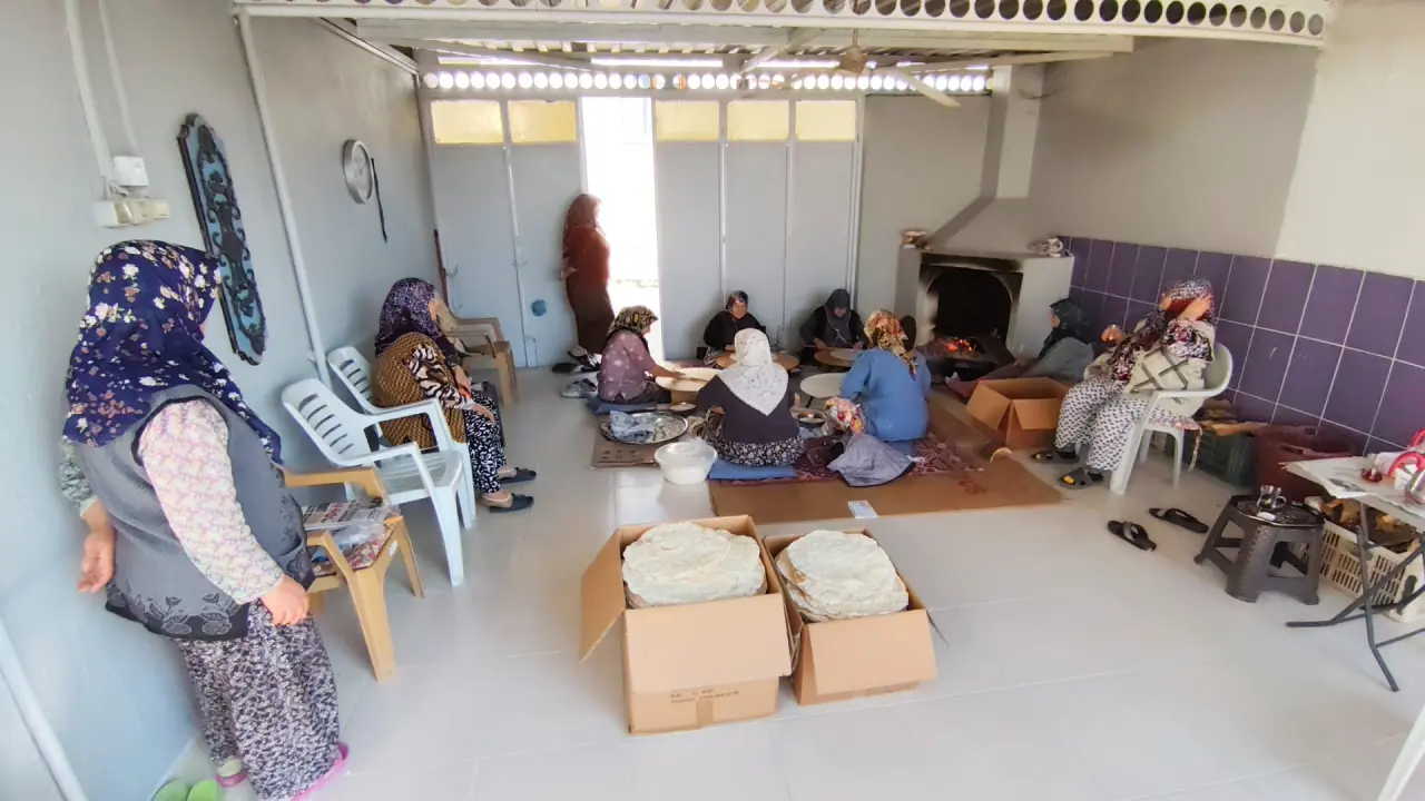 Geceden 25 kilogram un ile hamuru hazırladıklarını anlatan ev hanımlarından Nebahat Sabancı ise, "Sabah bahçede bir araya geliyoruz ve aramızda iş bölümünü yapıp hazırlanan hamurdan parçalara ayırarak yufkaları açmaya başlıyoruz. Hepimiz aynı anda açamıyoruz, aynı anda 6-7 kişi yufka açıyor 1 kişi de odun ateşinde hazırlanan yufkaları pişiriyor. Bir kişi de kutulara istif ediyor. Yorulan olursa kenarda bekleyen ile yer değiştiriyoruz. Kenarda bekleyenler aynı zamanda çay, kahve ikramları da hazırlama görevini üstlenmiş oluyor." diye konuştu.