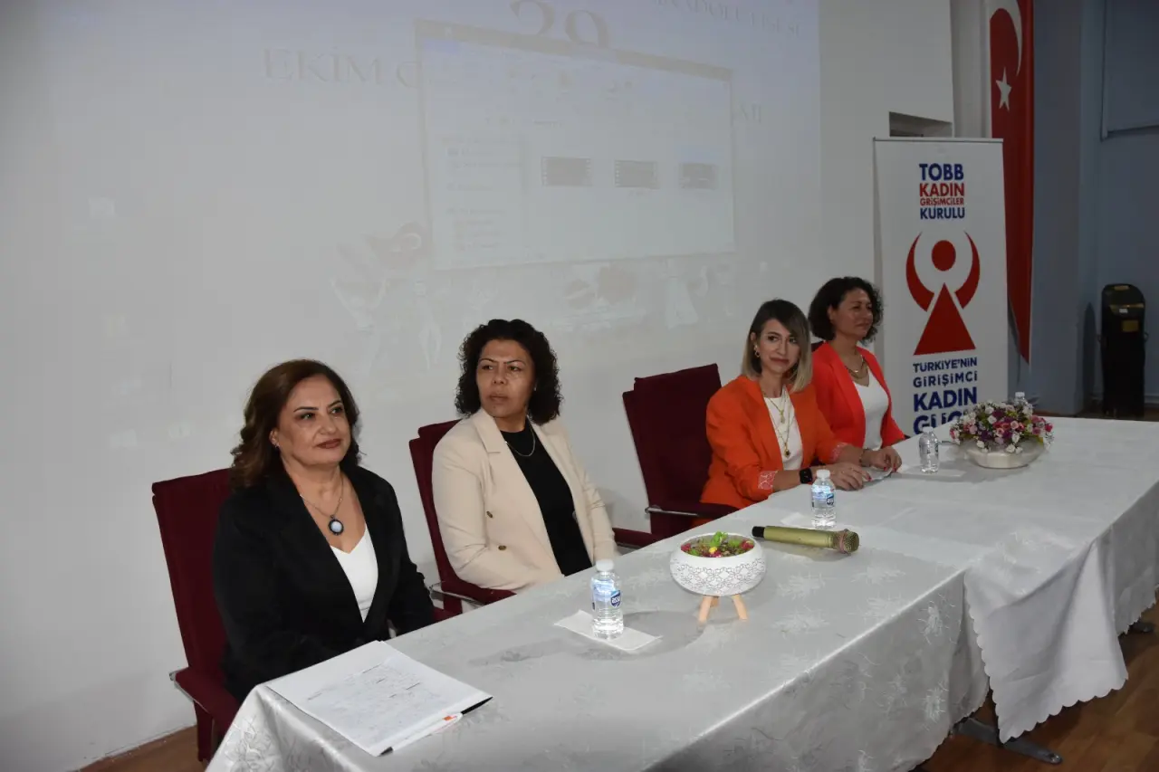 TOBB Manisa Kadın Girişimciler Kurulu Başkanı Emel Uslu, “Biz kadınlar tarih boyunca çalıştık, ürettik ve yücelttik. Tarlada elimize toprağı, hayatta umutları aldık. Ve emeğimizle, sabırla, inançla yaşamı güzelleştirdik. Cumhuriyet bizim için kaderimizi değiştiren bir devrim oldu. Kadını görünür, güçlü ve eşit kılan bir devrimdir. Bizler Cumhuriyet kadınları olarak kendimizle gurur duyuyoruz, mücadele etmeye devam ediyoruz. Bizler TOBB Manisa Kadın Girişimciler Kurulu İcra Komitesi üyeleriyiz. Kadınların istihdamını artırmak için, kadın girişimcilerin sayısını artırmak için elimizden geldikçe her yerde her sahada, okulda, fabrikada, belediyede, kurumlarda çalışıyoruz. Gençlere ışık olmaya çalışıyoruz ” dedi.