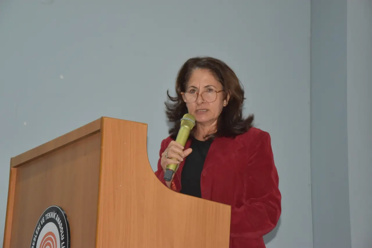 Polinas Mesleki ve Teknik Anadolu Lisesi Müdürü Sibel Gümüş, “Cumhuriyetimizin 102 Yıl dönümünü milletçe büyük bir gurur, coşku ve heyecanla kutluyoruz. Kutlama etkinlikleri kapsamında her zaman olduğu gibi bugünde yanınızda olan, eğitimi önceleyen Manisa Ticaret ve Sanayi Odası Kadın Girişimciler Kuruluna çok teşekkür ediyorum. Türkiye Yüzyılı vizyonu doğrultusunda Türkiye Yüzyılı Maarif Modeli ile öğrencilerimizi sadece bilgiyle değil, milli değerlerle, erdemle, özgüvenle ve üretim becerileriyle donatmaya kararlıyız. Hedefimiz, geleceği inşa edecek gençlerimizi, çağım gerektirdiği niteliklerle buluşturmak ve onları vatanına, milletine faydalı bireyler olarak yetiştirmek. Bu noktada mesleki ve teknik eğitim, ülkemizin kalkınma hamlesinin en önemli unsurlarındandır. Üreten Türkiye idealine, alin teriyle, becerisiyle zekasıyla katkı sunacak gençlerimizi yetiştirmek. Cumhuriyetimize olan borcumuzdur Atatürk’ün "En büyük savaş, cehalete karşı verilen savaştır" sözünü kendimize rehber edinerek her atölyede, her derste, her projede Cumhuriyetin ruhunu yaşatmaya devam edeceğiz. Hayatta hiçbir şeyin zor ve imkânsız olmadığını sadece zamana ihtiyaç olduğunu göreceksiniz” dedi.