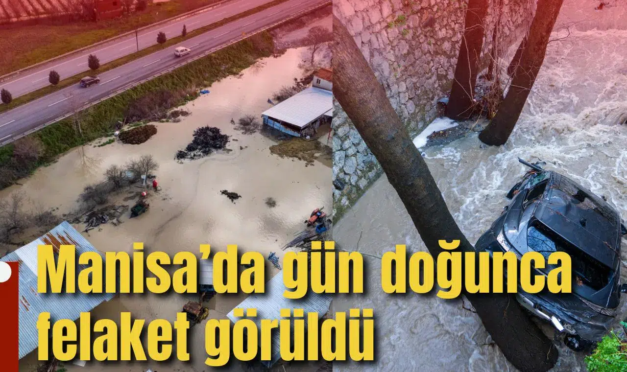 Gecenin karanlığında yaşanan taşkının boyutu, sabahın ilk ışıklarıyla birlikte havadan ve karadan çekilen görüntülerle ortaya çıktı. İzmir-Manisa çevre yolu çevresinde bulunan geniş tarım arazileri sular altında kalarak adeta göle dönerken, bölgedeki bir hayvan damı da taşkın sularından ciddi şekilde etkilendi. Dün akşam dereye düşen otomobilin ise ağaçların arasına sıkışmış hali gün yüzüne çıktı. Aracın bulunduğu yerden çıkarılması için suyun şiddetinin azalması bekleniyor.
