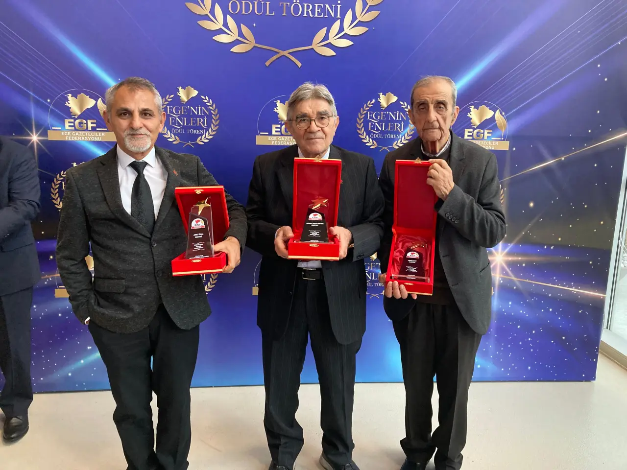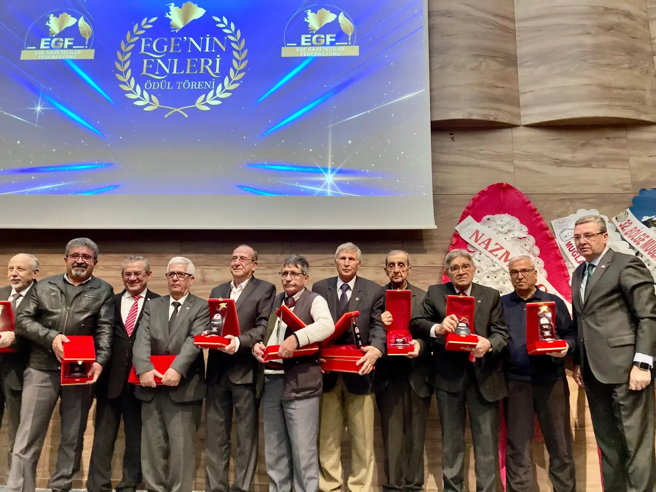 Ege Gazeteciler Federasyonu’na bağlı 8 ilin gazeteciler cemiyetleri ve bu cemiyetlere üye gazetecilerin oylarıyla yapılan değerlendirme sonucunda; valilerden kaymakamlara, ilçe belediye başkanlarından iş insanlarına, kadın girişimcilerden spor insanlarına kadar birçok alanda 2025 yılının en başarılı isimleri düzenlenen törenle ödüllerini aldı.