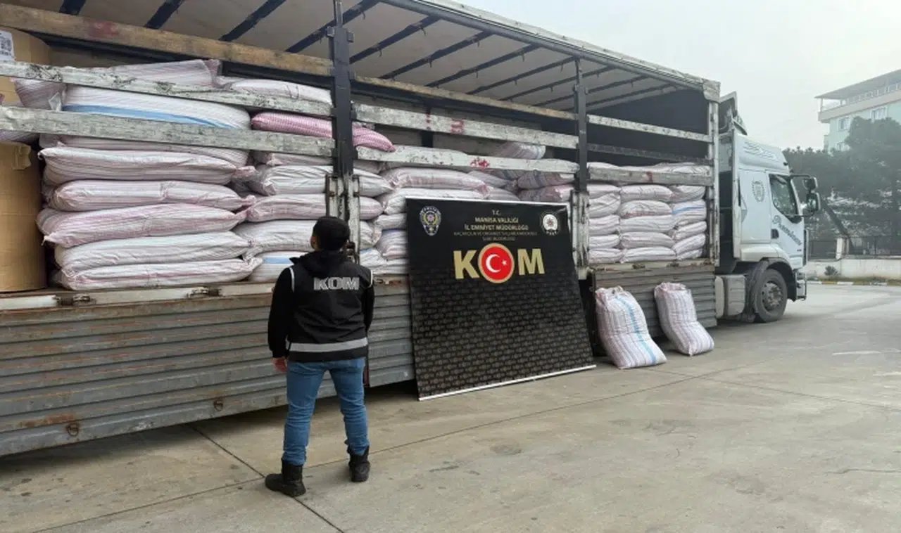 Manisa İl Emniyet Müdürlüğü Kaçakçılık ve Organize Suçlarla Mücadele Şube Müdürlüğü ve İstihbarat Şube Müdürlüğü görevlilerince, tütün ve tütün mamulleri kaçakçılığının önlenmesine yönelik Turgutlu ilçesinde yapılan ortak çalışma sonucu M.K. (53) isimli şahsın sevk ve idaresindeki tır durdurularak arama yapıldı. Yapılan aramada da yapılan aramada 6 ton 200 kilo kıyılmış tütün ve 850 paket gümrük kaçağı sigara ele geçirildi. Şüpheli şahıs hakkında adli işlem başlatıldığı öğrenildi. İHA